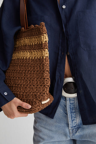 Kahverengi Nina Renkli Çizgili Rafya Çanta 42x31x11cm
