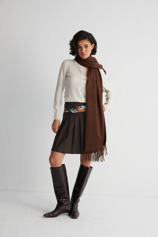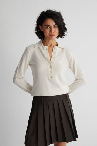 Ekru Isabella Saf Kaşmir Kayık Yaka Kazak