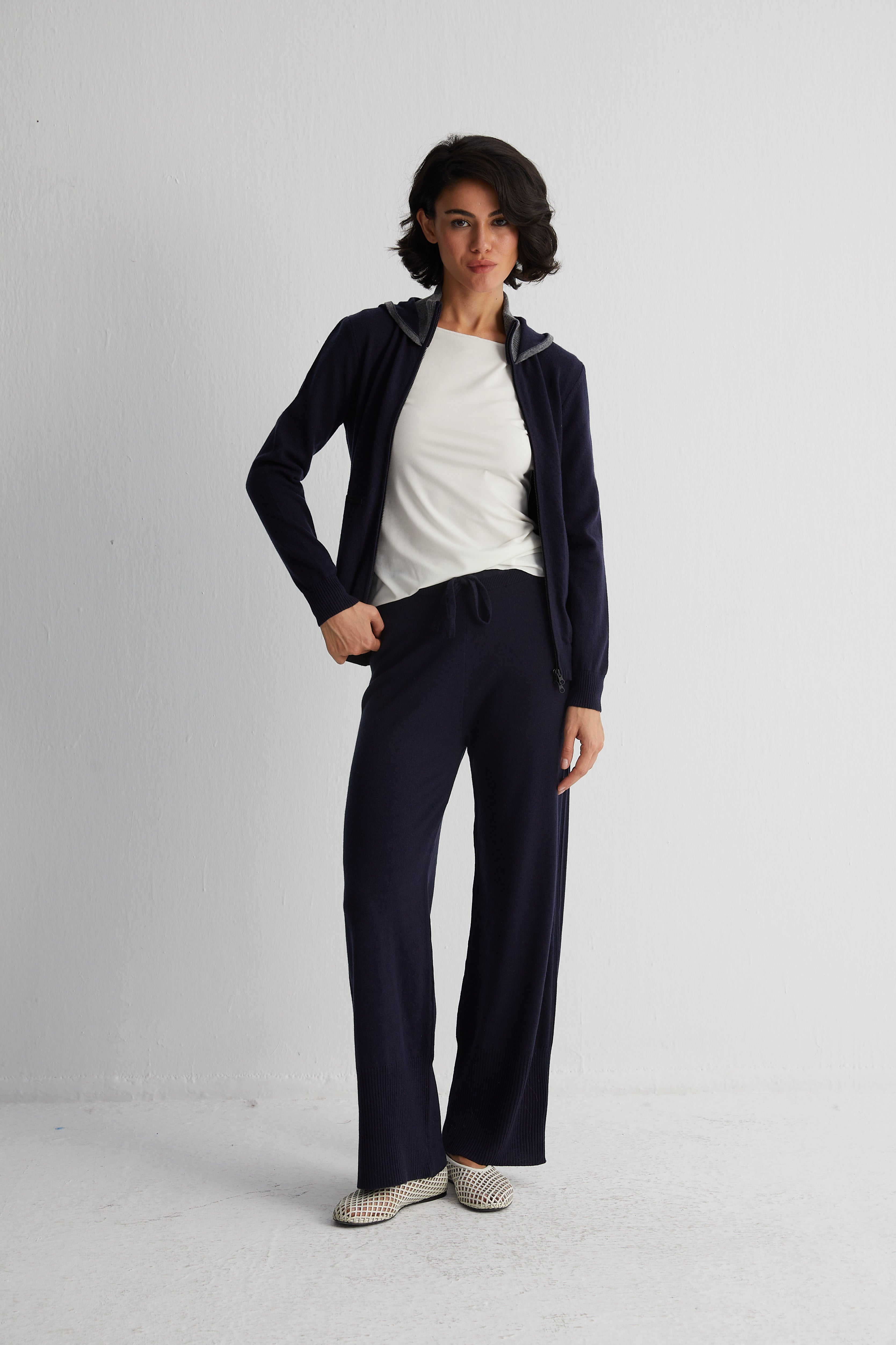 Lacivert Laura Yün Kaşmir Yüksek Triko Pantolon