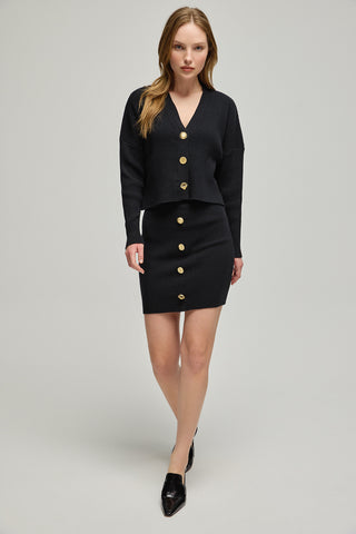 Siyah Saf Yün Stella Ribanalı Kadın Kısa Etek