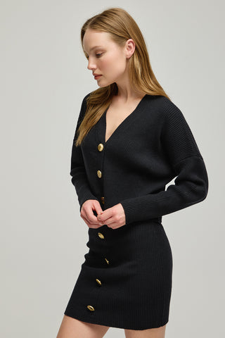 Siyah Saf Yün Stella V Yaka Ribanalı Yarasa Kollu Kadın Crop Hırka