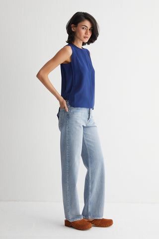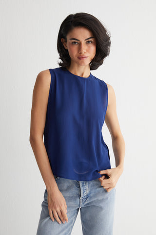 Lacivert Toscana İpek Yuvarlak Yaka Rahat Kesim Bluz