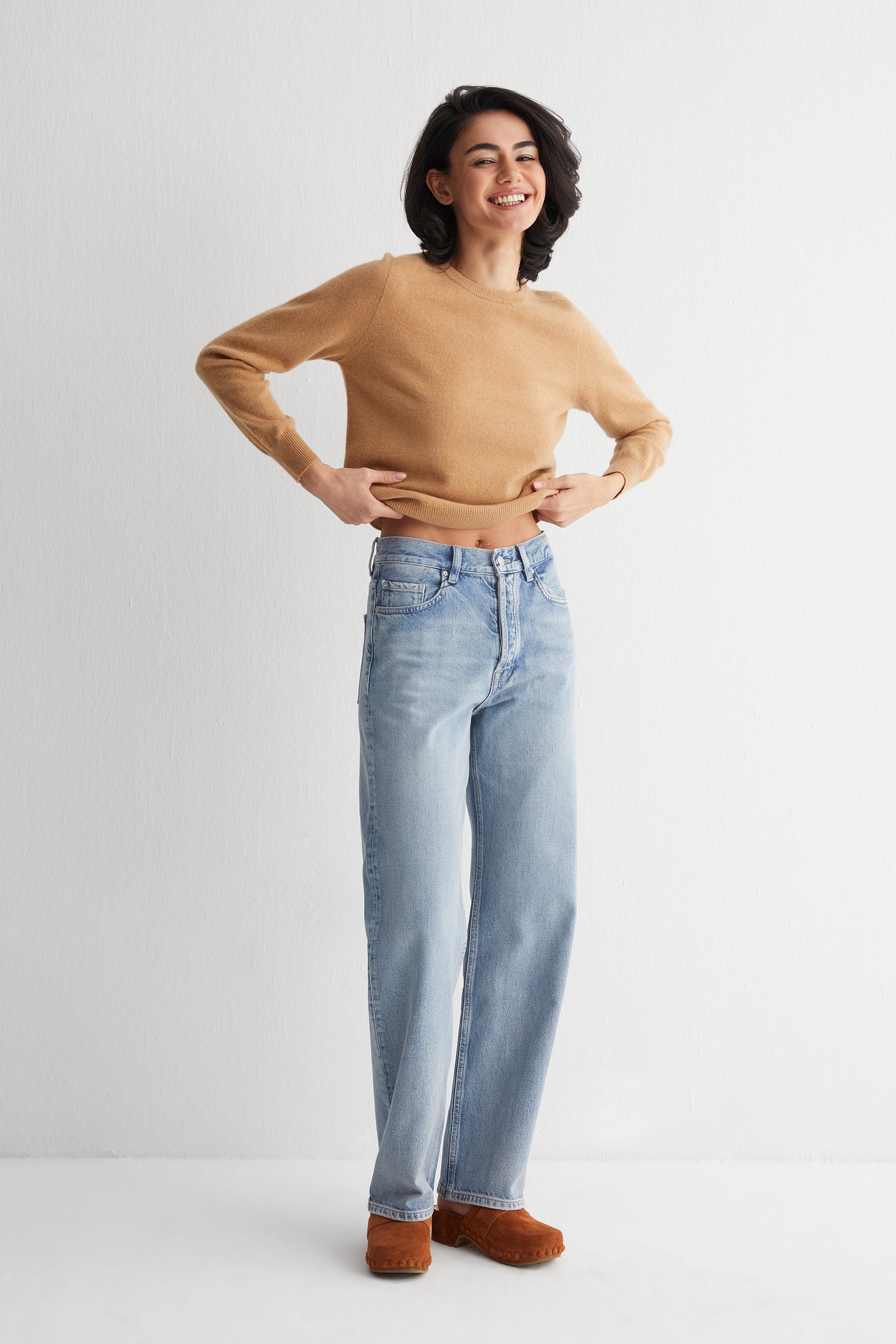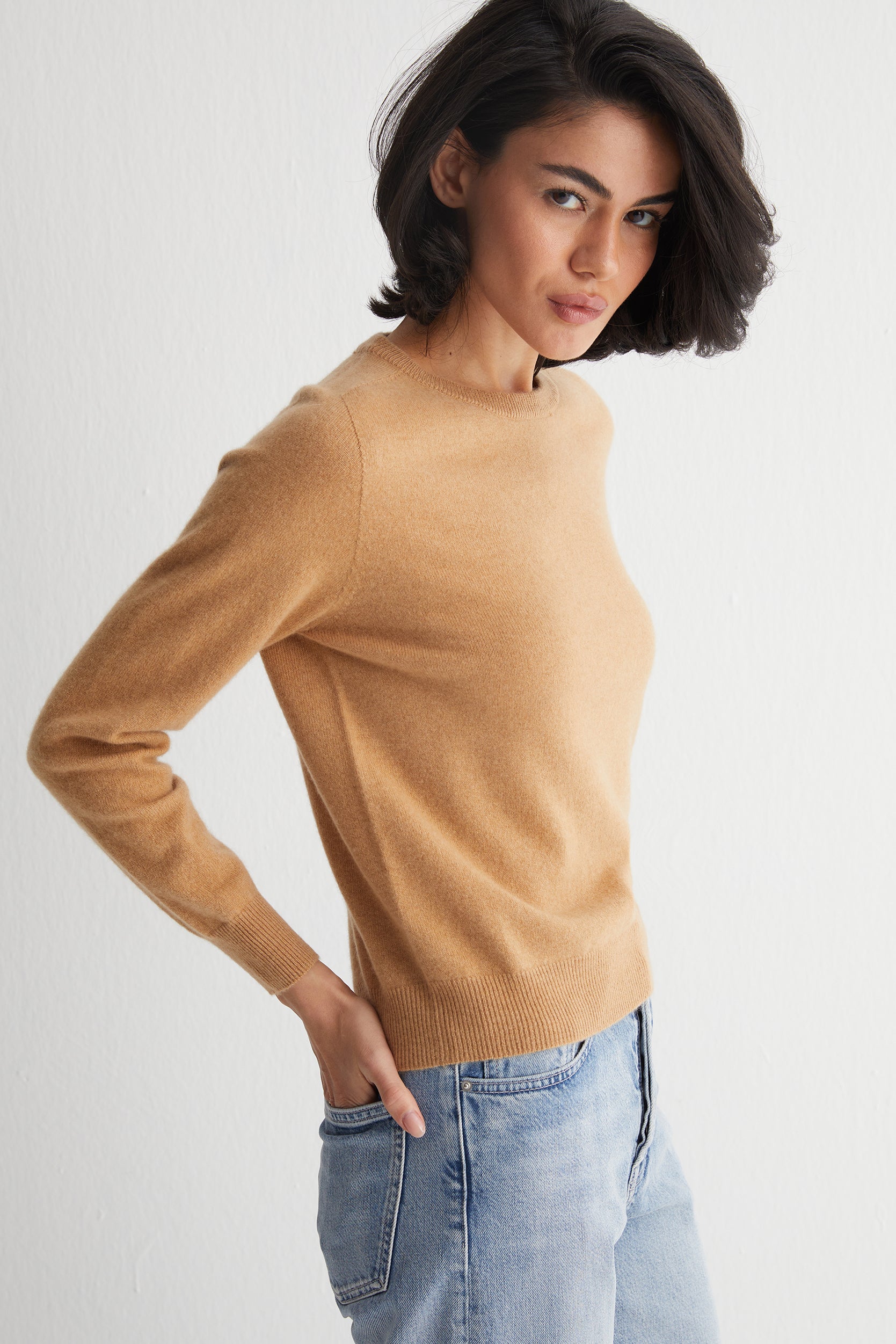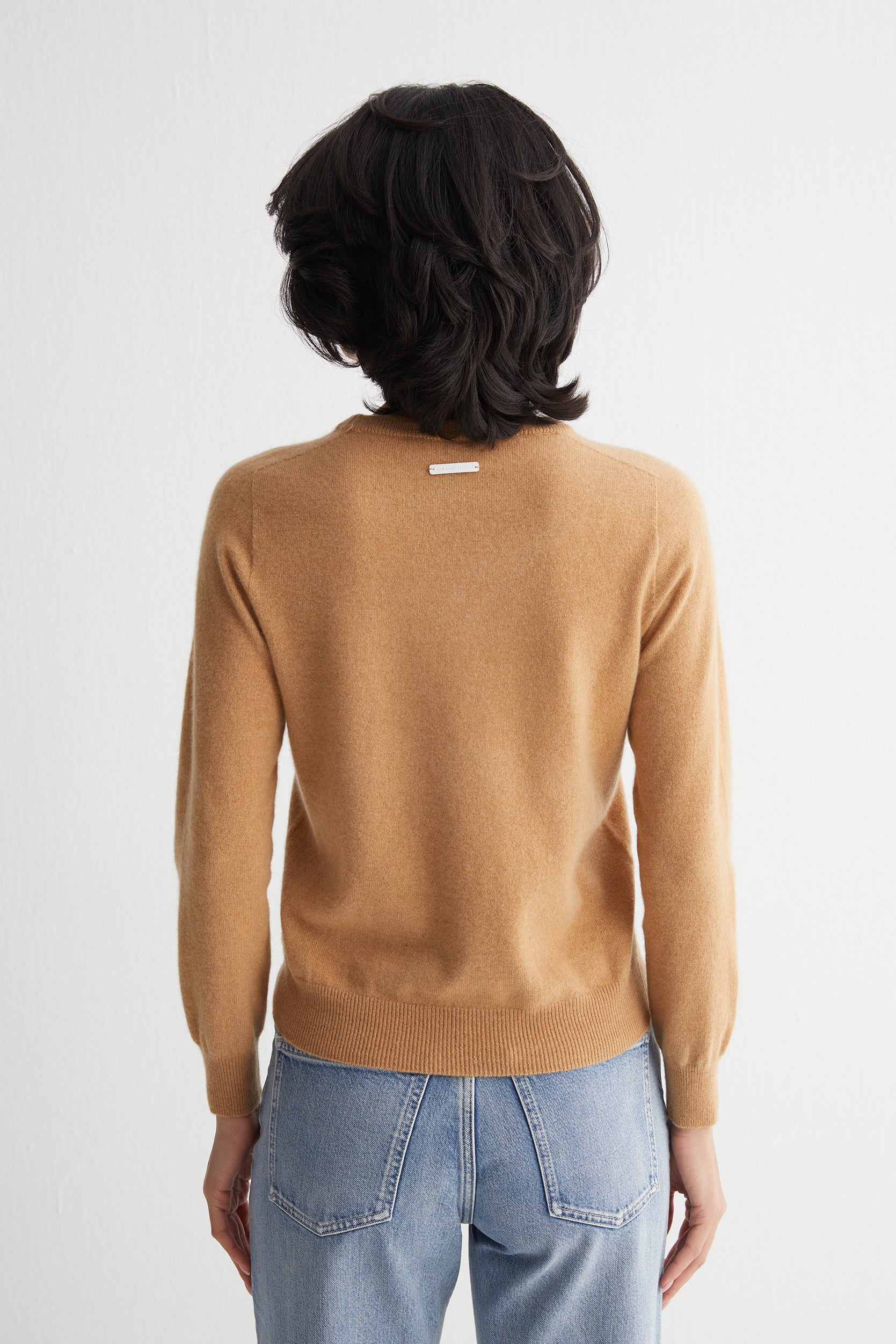 Bej Alexia Saf Kaşmir Bisiklet Yaka Kazak