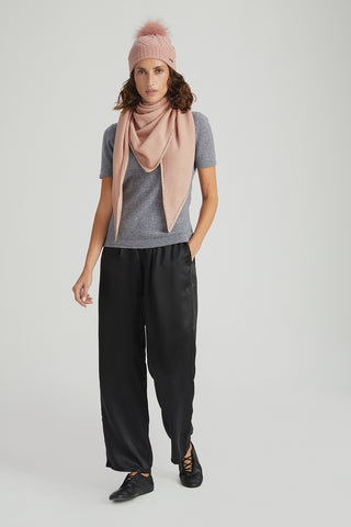 Gül Kurusu Saf Kaşmir Taşlı Üçgen Şal 105x105x165 cm