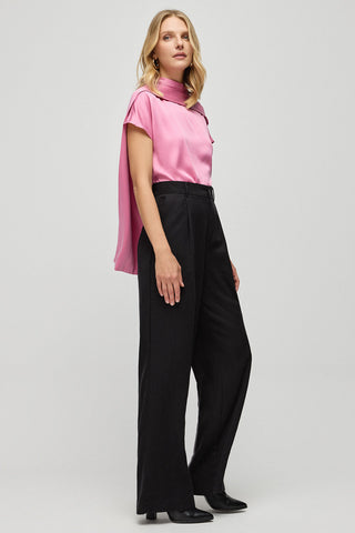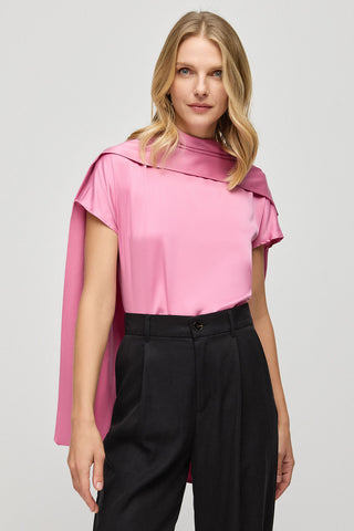 Gül Kurusu Saf İpek Cecilia Fular yaka Kısa Kollu Bluz