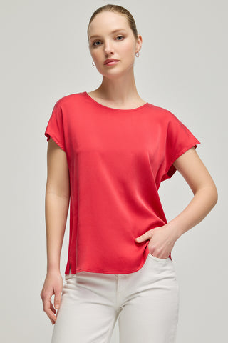 Kırmızı Marina İpekli Yuvarlak Yaka Kısa Kollu T-Shirt