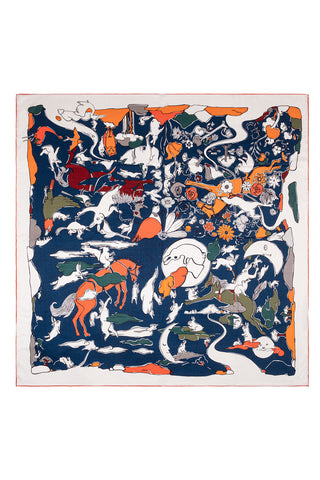Turuncu Sarı Rose Saf Kaşmir Çizgili Fular Bandana 85x30x30 cm