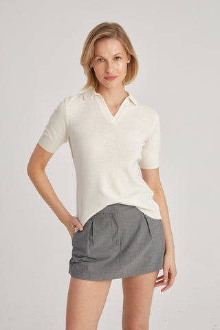 Ekru Kaşmir Yün Merril Yuvarlak Yaka Taş Süs Detaylı Kısa Kollu Triko