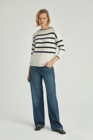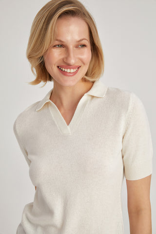 Ekru Isabella Saf Kaşmir Kayık Yaka Kazak