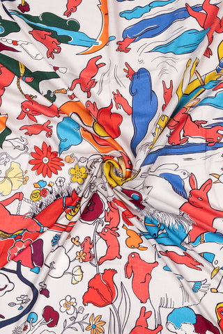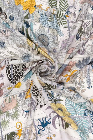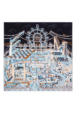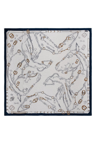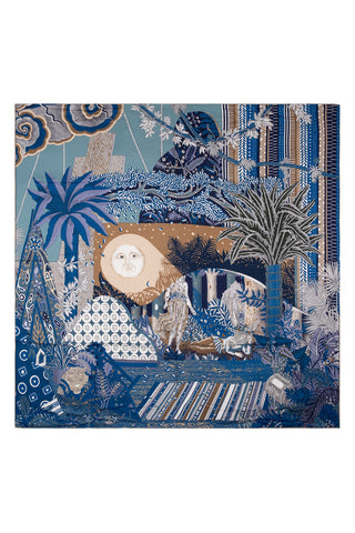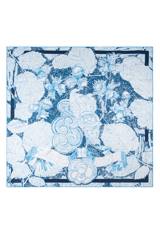 Mavi Lara İpek Desenli Kare Eşarp 90x90