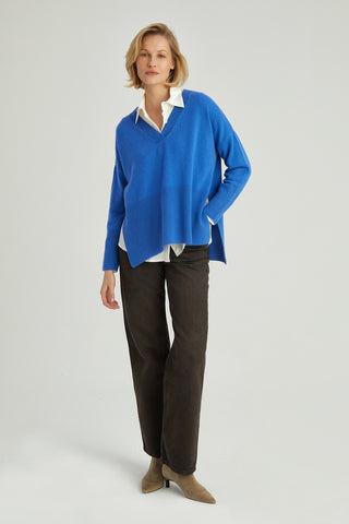 Mavi Isabella Saf Kaşmir Derin V Yaka Kazak