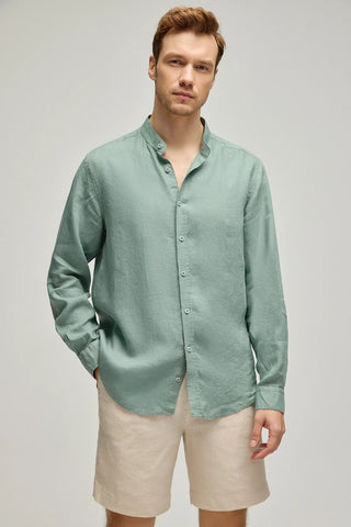Haki Leon Keten Hakim Yaka Uzun Kollu Gömlek