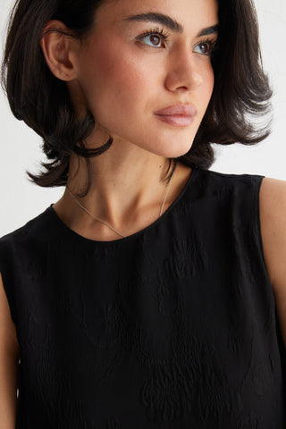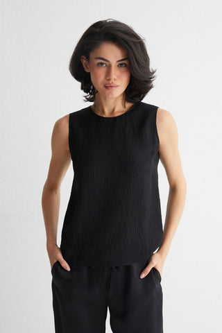 Siyah Nature Saf İpek Taş Süslemeli Yuvarlak Yaka Kısa Kollu Bluz