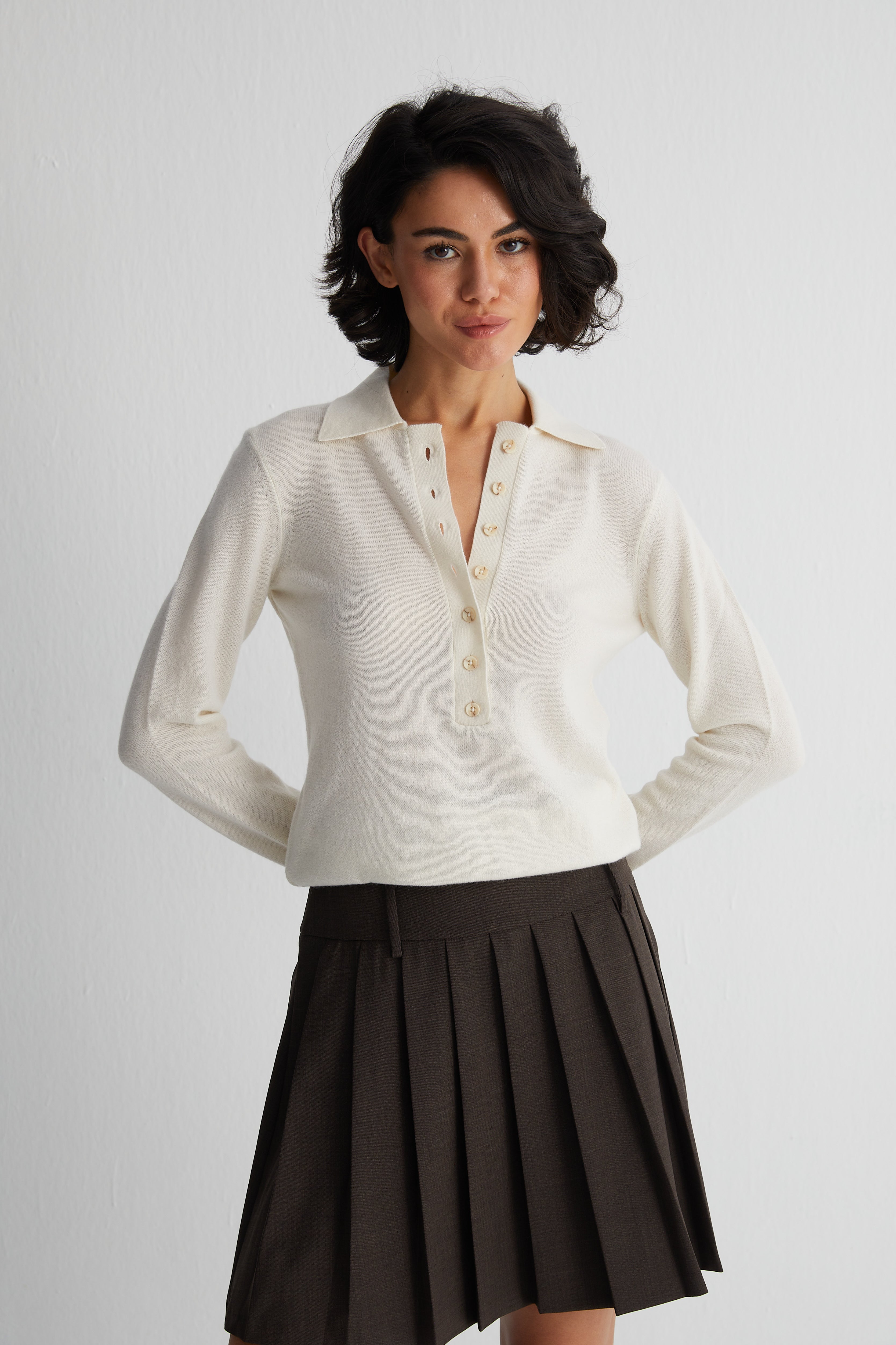 Ekru Vanessa Saf Kaşmir Polo Kazak