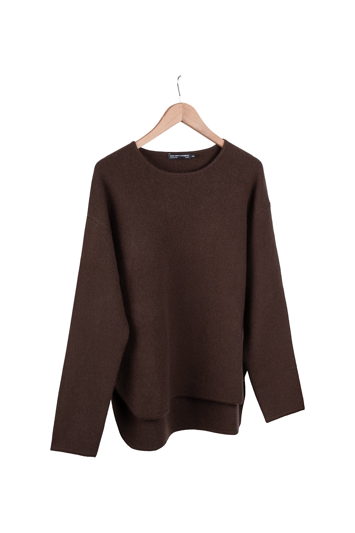 Kahverengi Alexia Saf Kaşmir Çelik Örgü Kazak