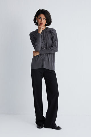 Siyah Aleyna İpek ve Kaşmir Yuvarlak Yaka Uzun Kollu Kadın Triko
