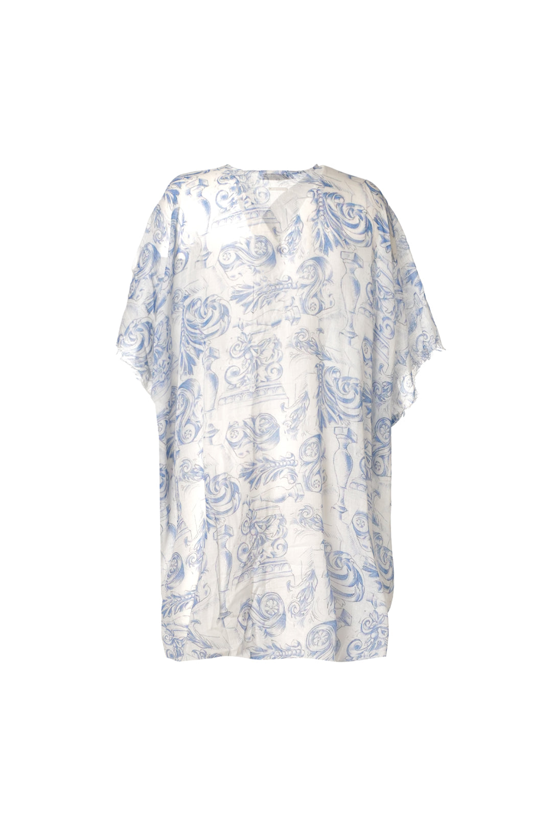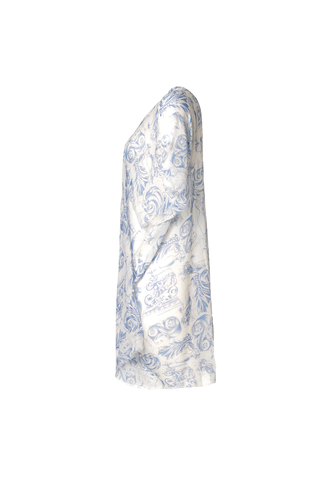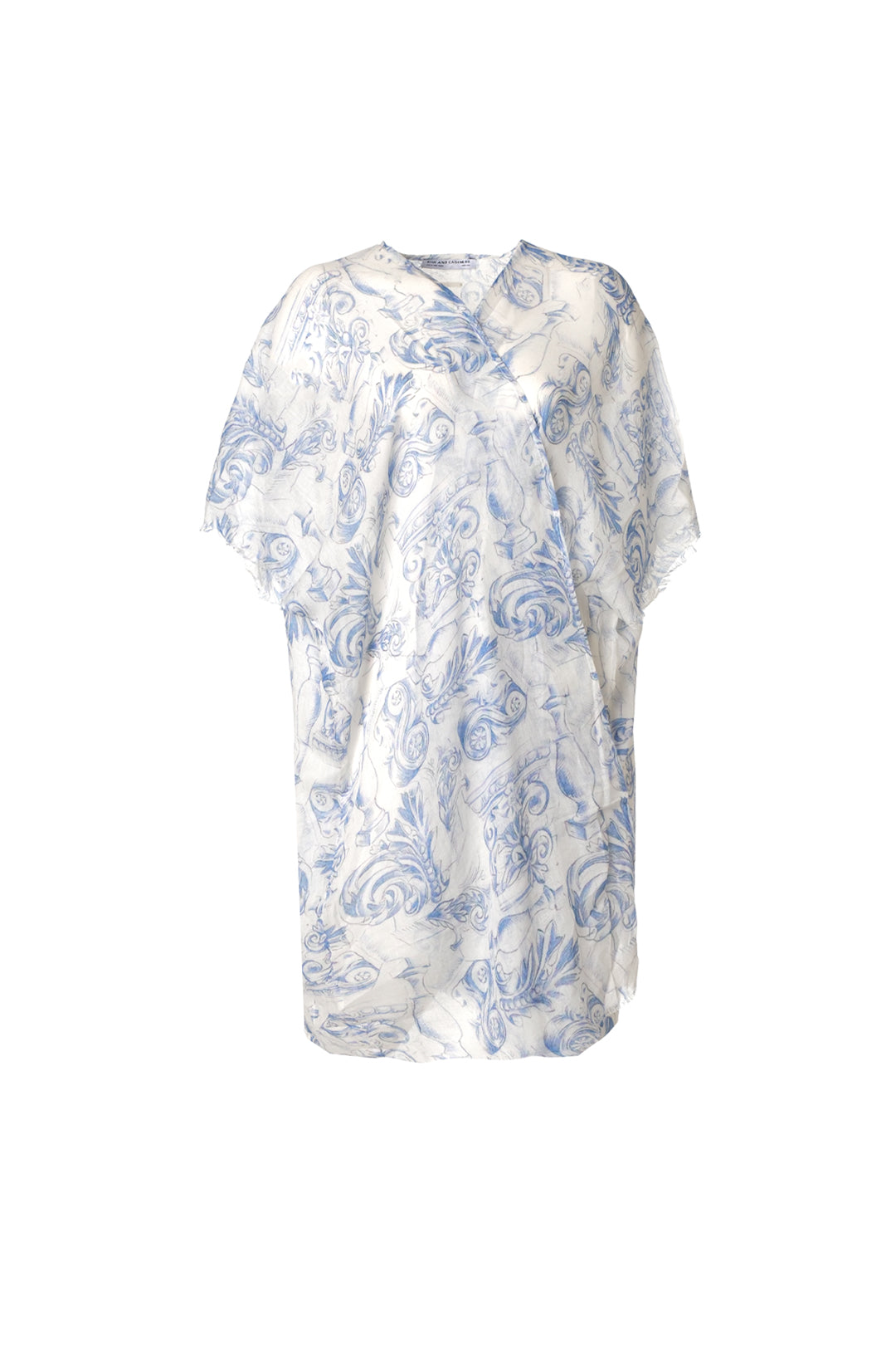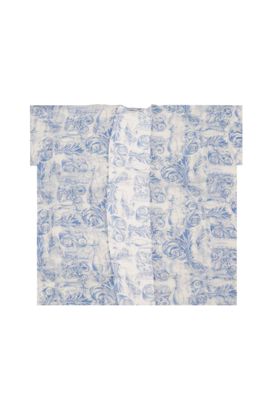 Mavi Jas İpekli Desenli Kısa Kollu Kimono Hırka