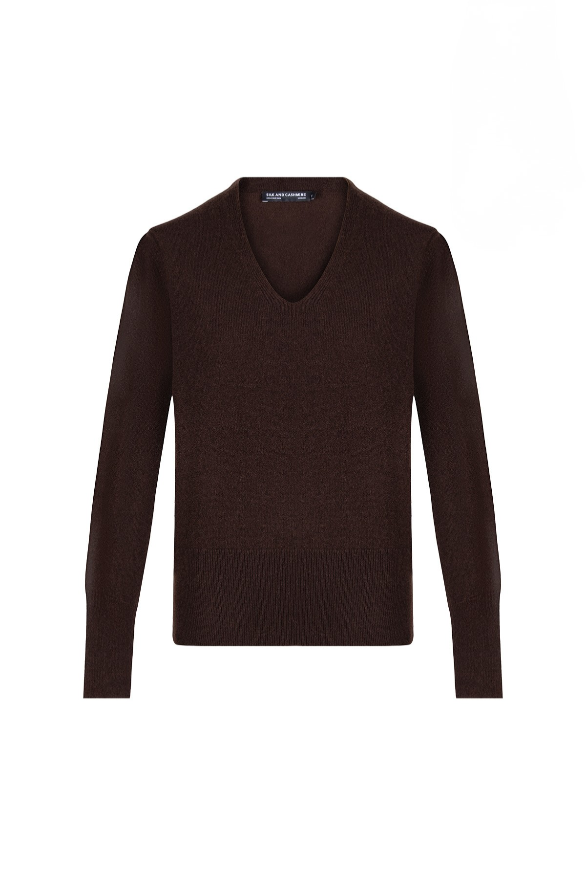 Kahverengi Franca Saf Kaşmir Derin V Yaka Kazak