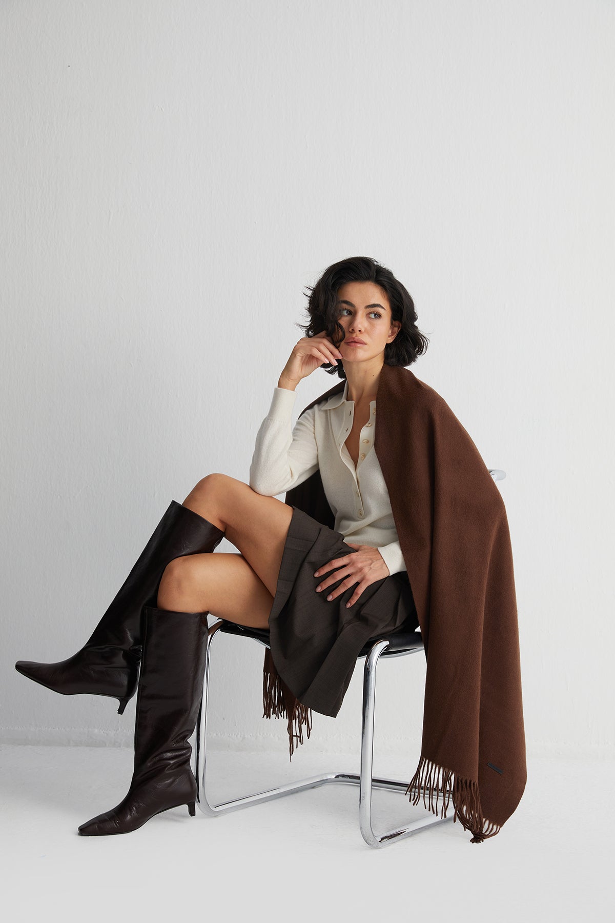 • Saf kaşmir yapısıyla yumuşak ve doğal bir his sunar.