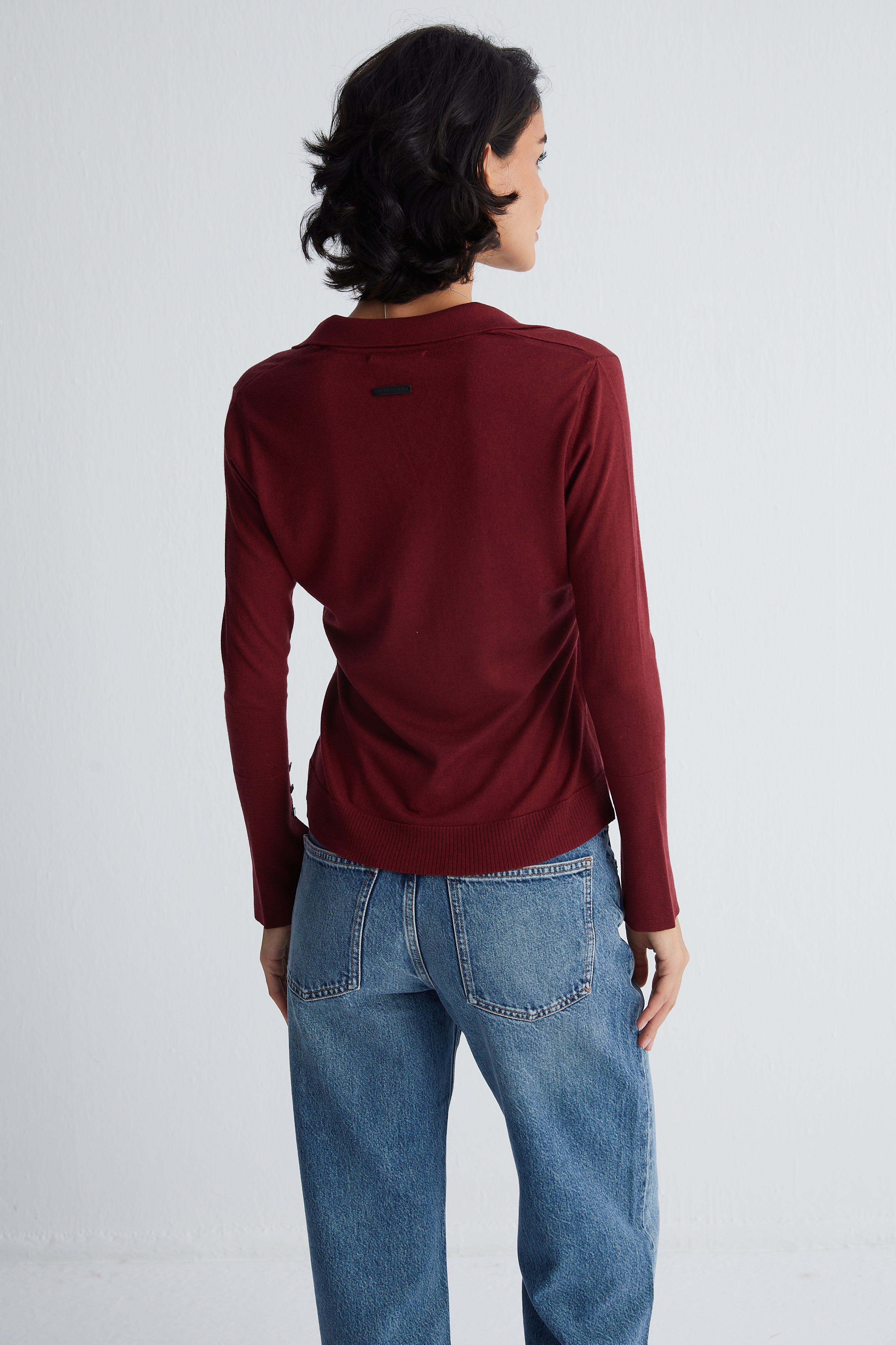 Bordo Zoe İpek Kaşmir Polo Yaka Triko