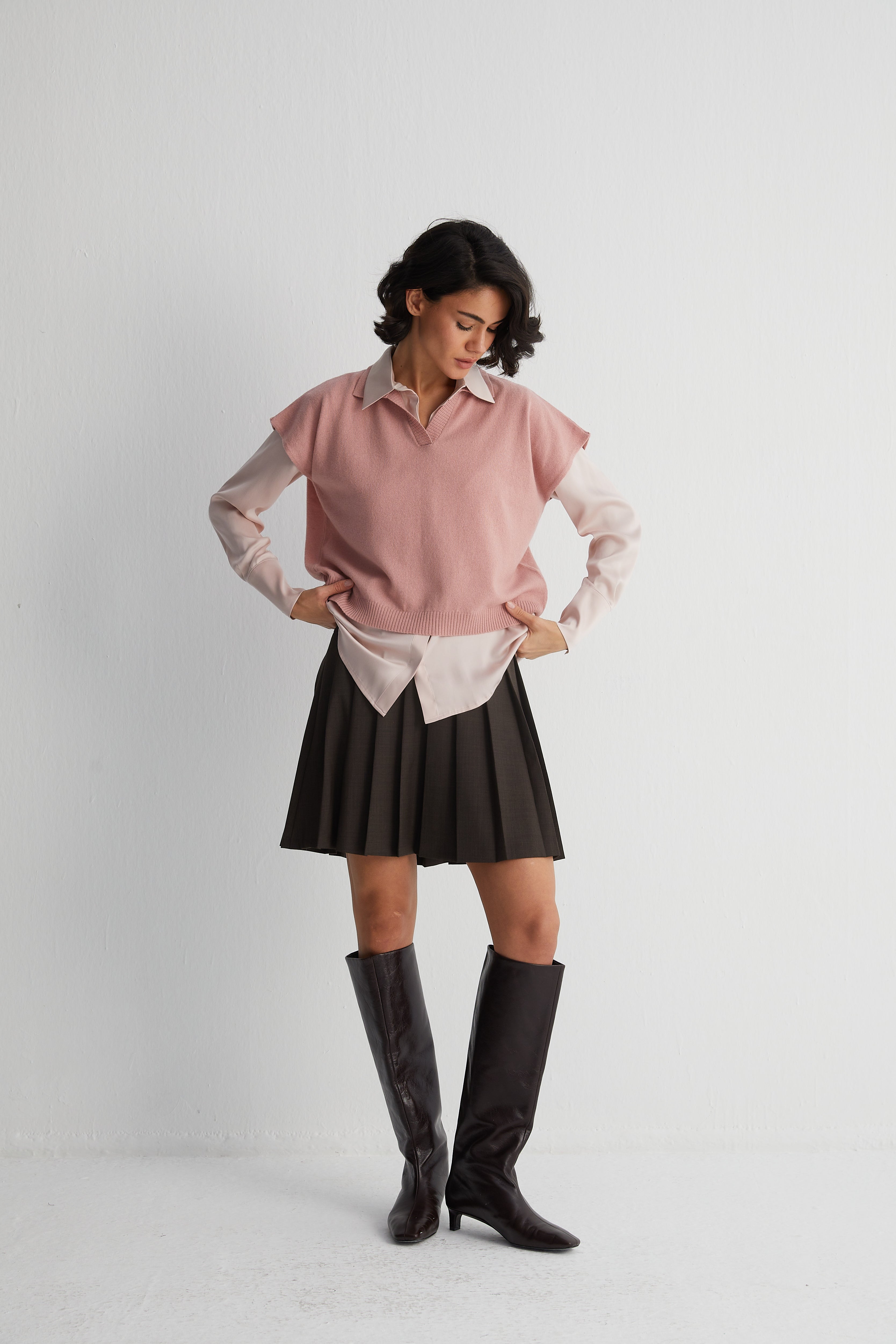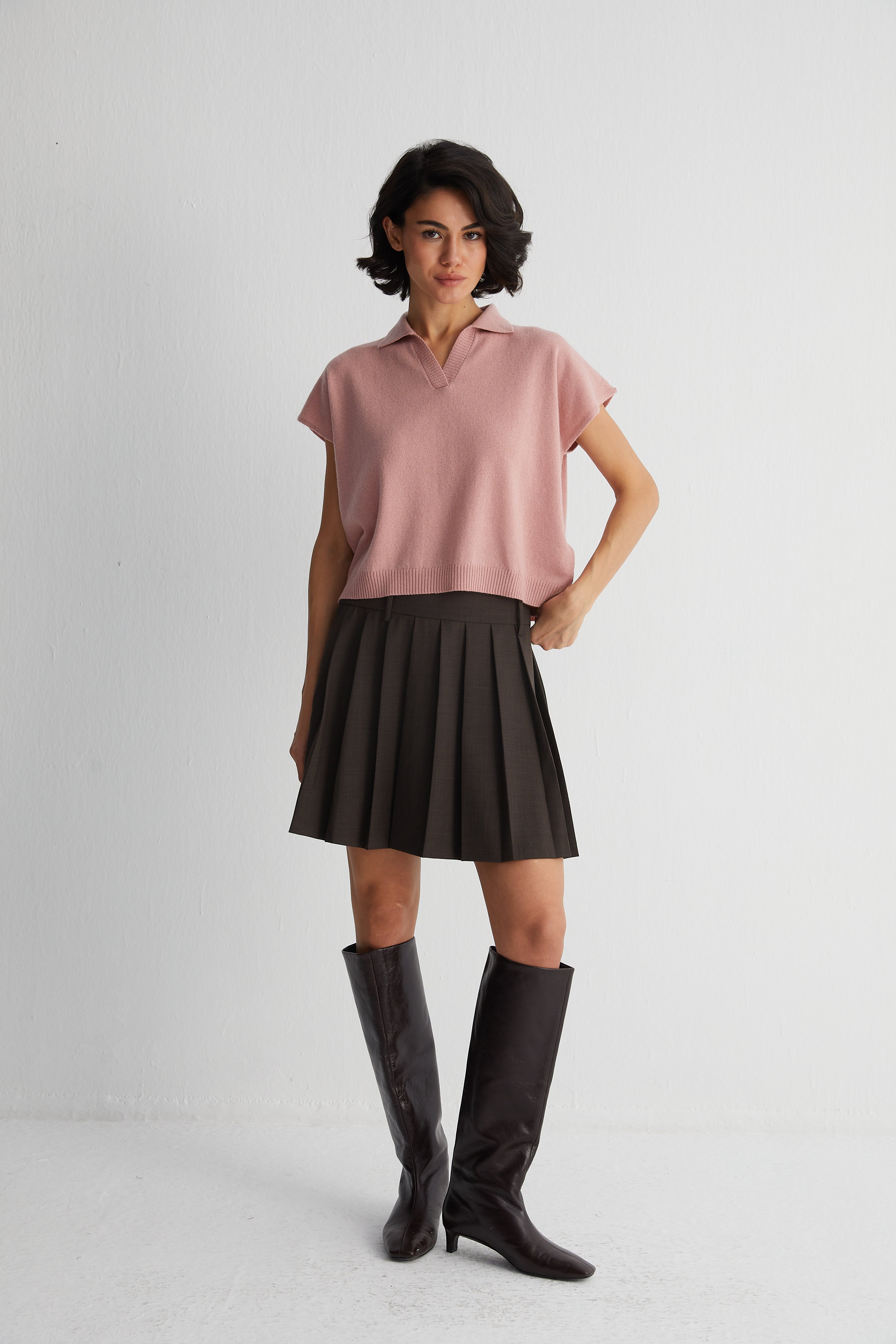 Pastel Pembe Vanessa Saf Kaşmir Kısa Kollu Polo