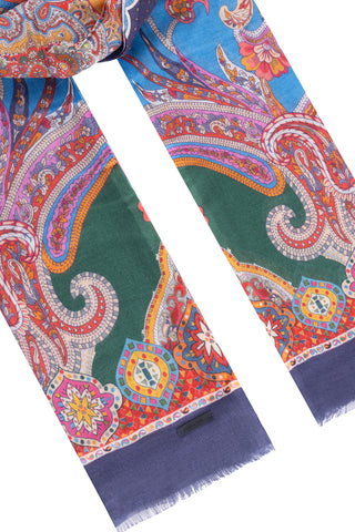 Kırmızı Lacivert Rose Saf Kaşmir Çizgili Fular Bandana 85x30x30 cm