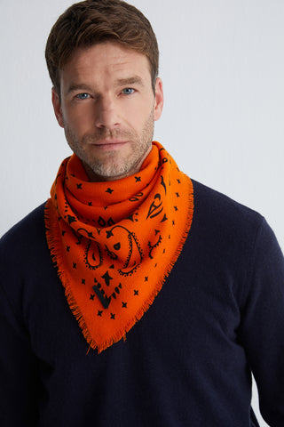 Turuncu Sarı Rose Saf Kaşmir Çizgili Fular Bandana 85x30x30 cm