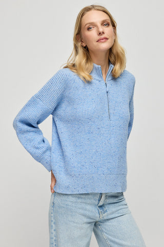 Mavi Aurora Avustralya Yünü Kaşmir Ribana Örgülü Fermuarlı Uzun Kollu Kadın Kazak