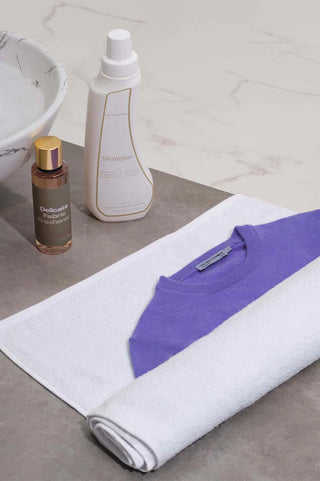 Kaşmir ürünlerinizi düz bir zeminde, doğrudan güneş ışığından uzakta, havlu üzerine sererek kurutun. Isıtıcılarda veya kurutma makinasında kurutmaktan kesinlikle kaçının.
