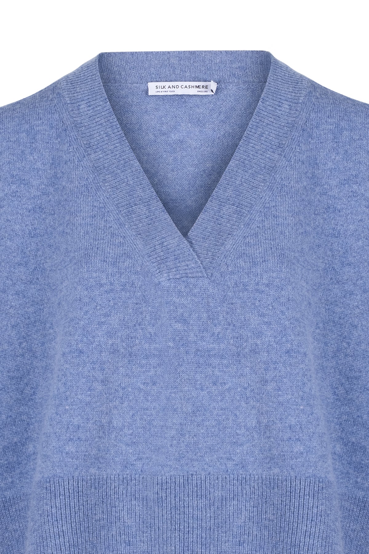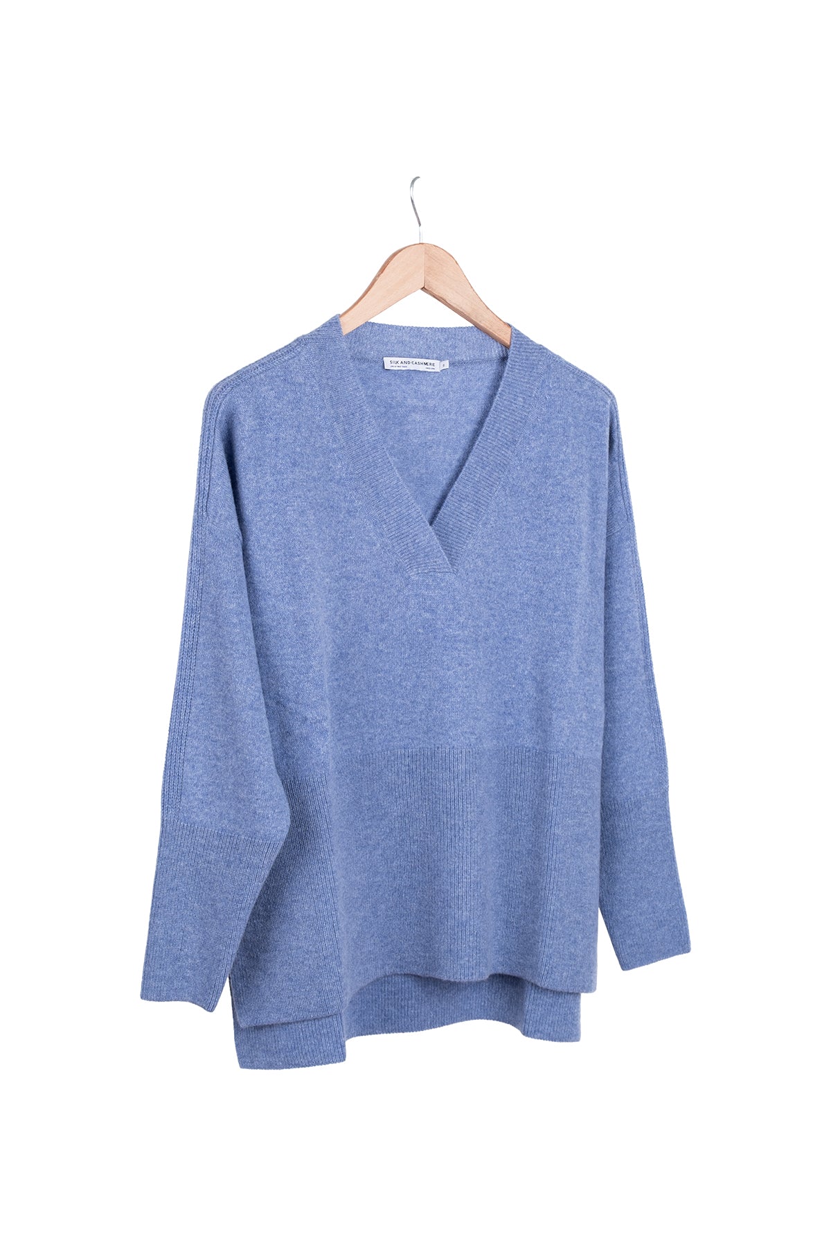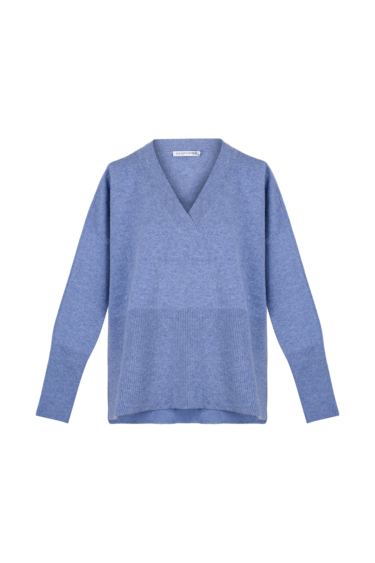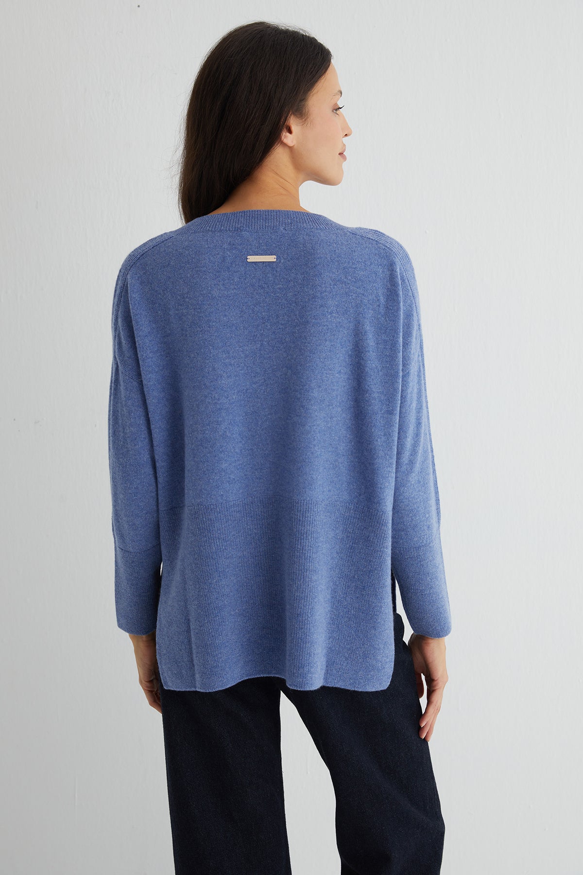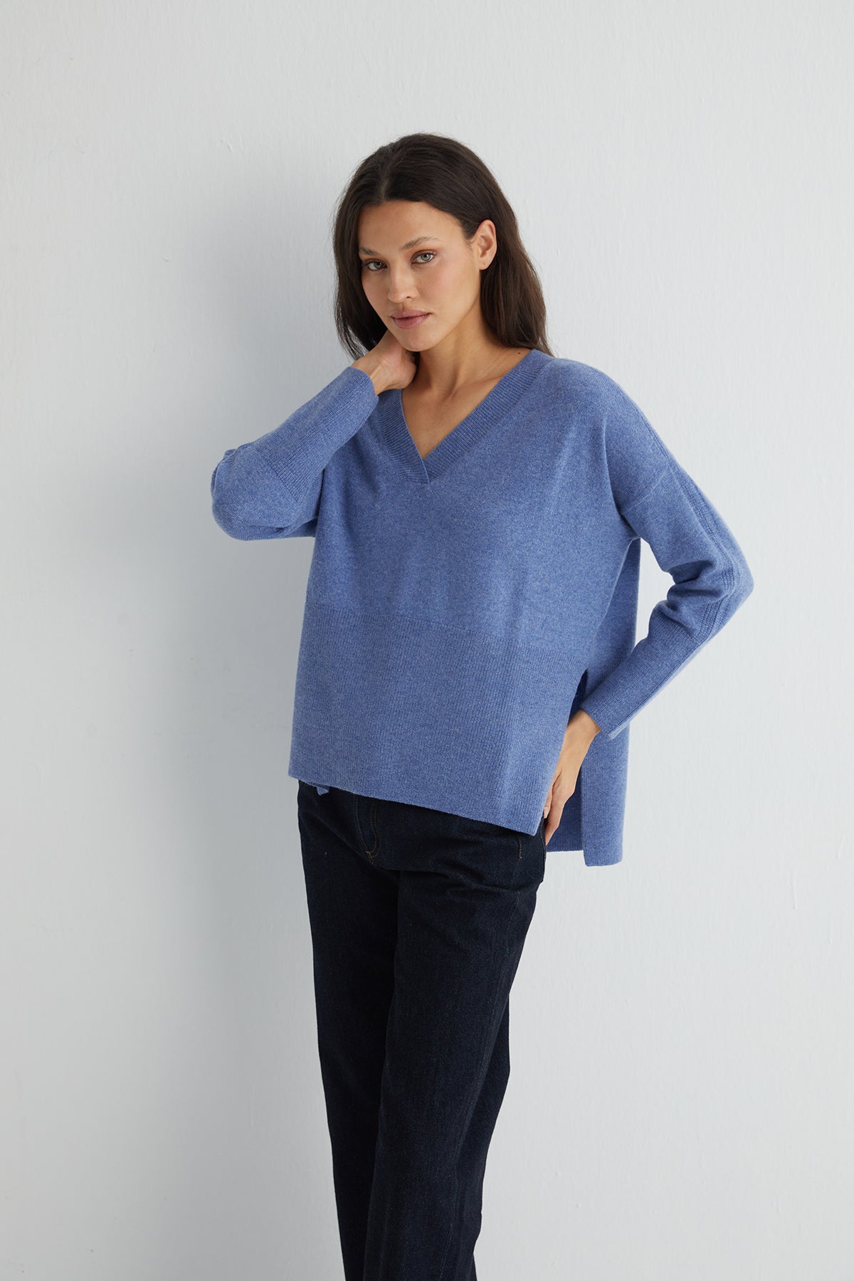 Açık Denim Isabella Saf Kaşmir Derin V Yaka Kazak
