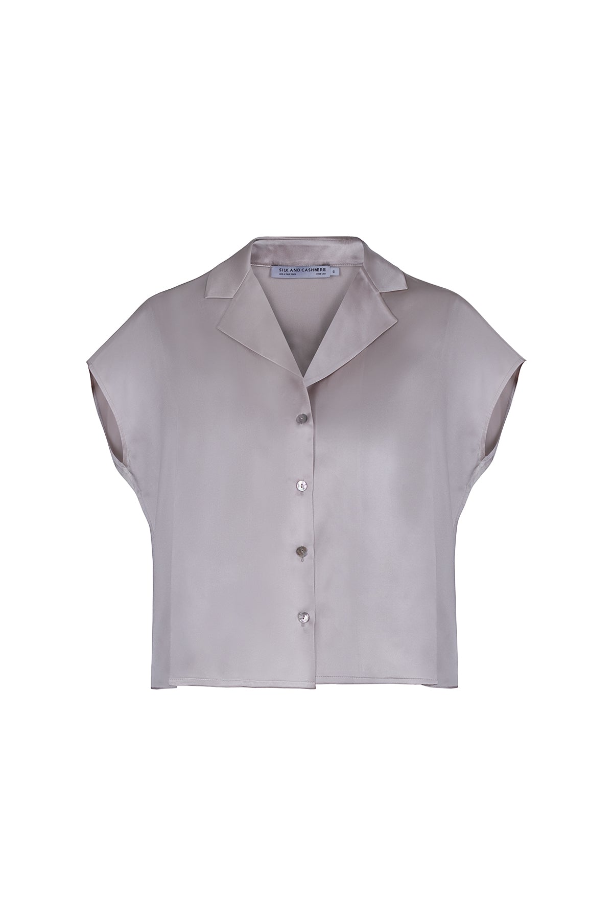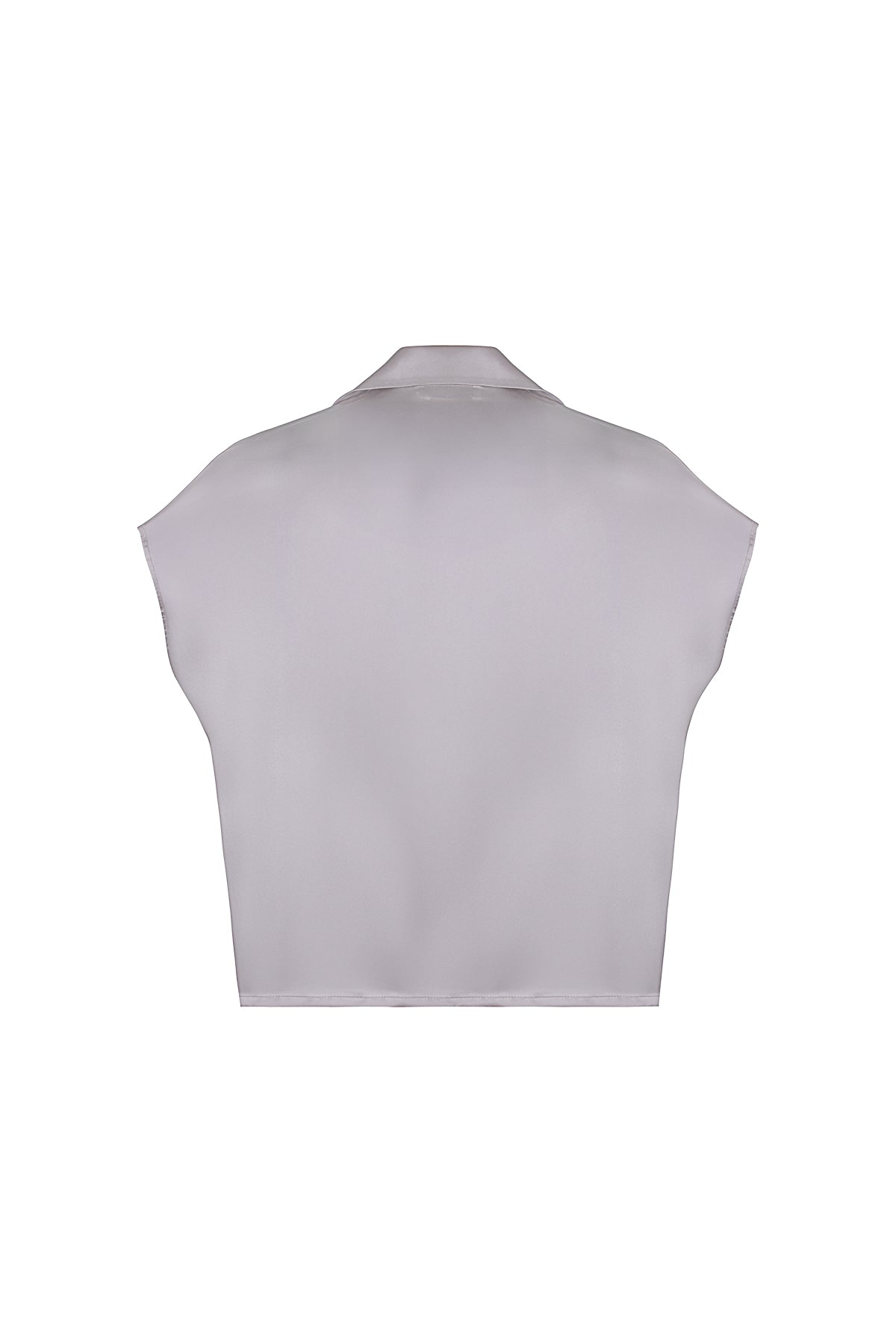 Açık Gri Astrid Saf İpek Kolsuz Gömlek