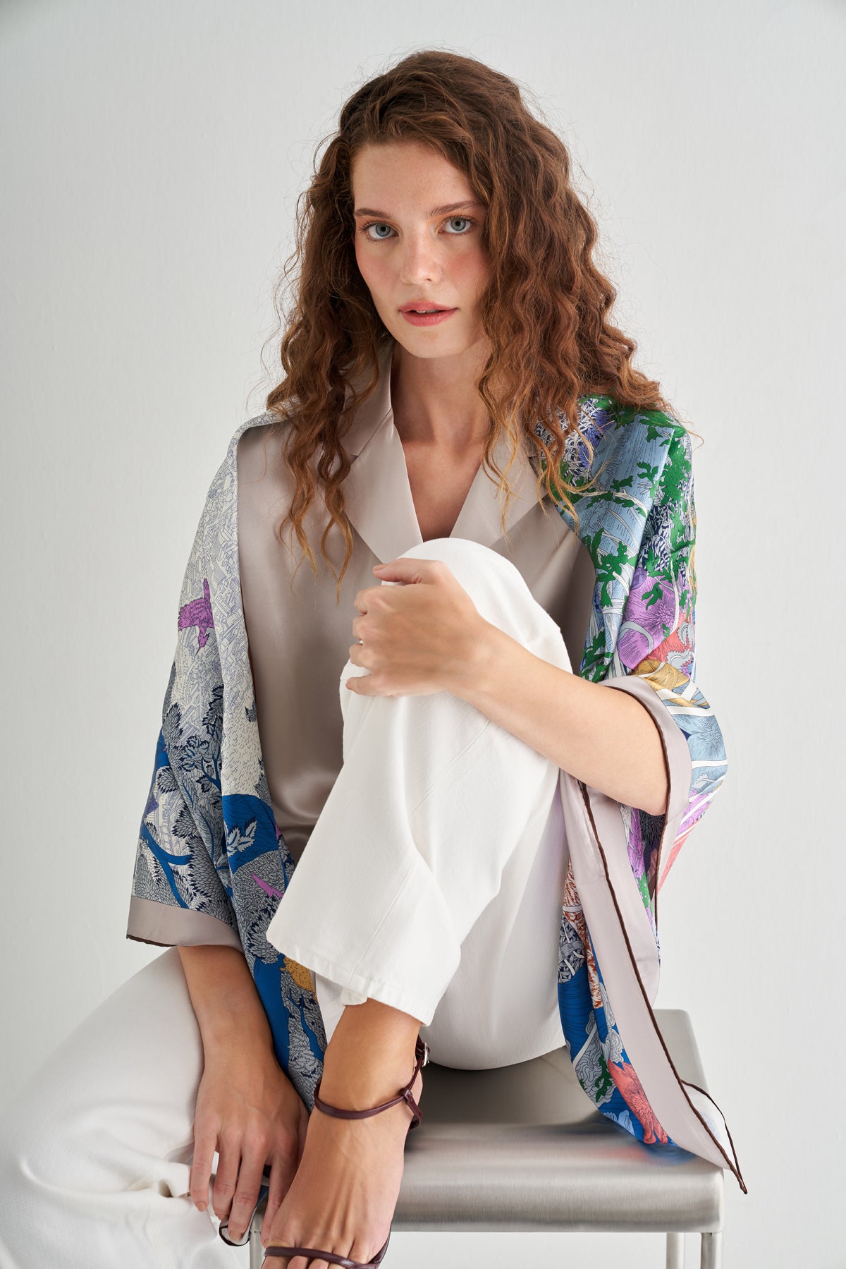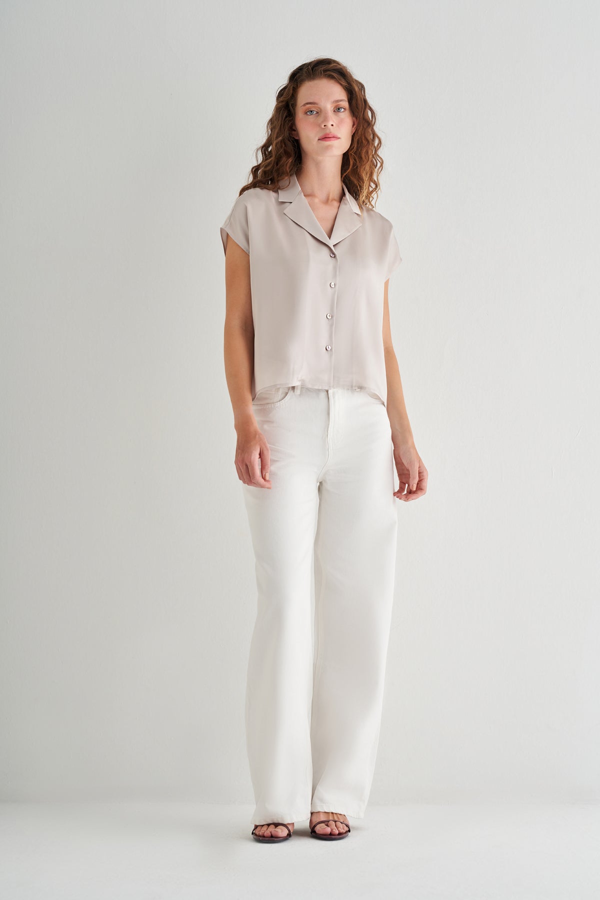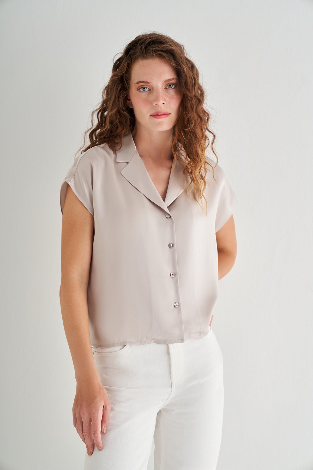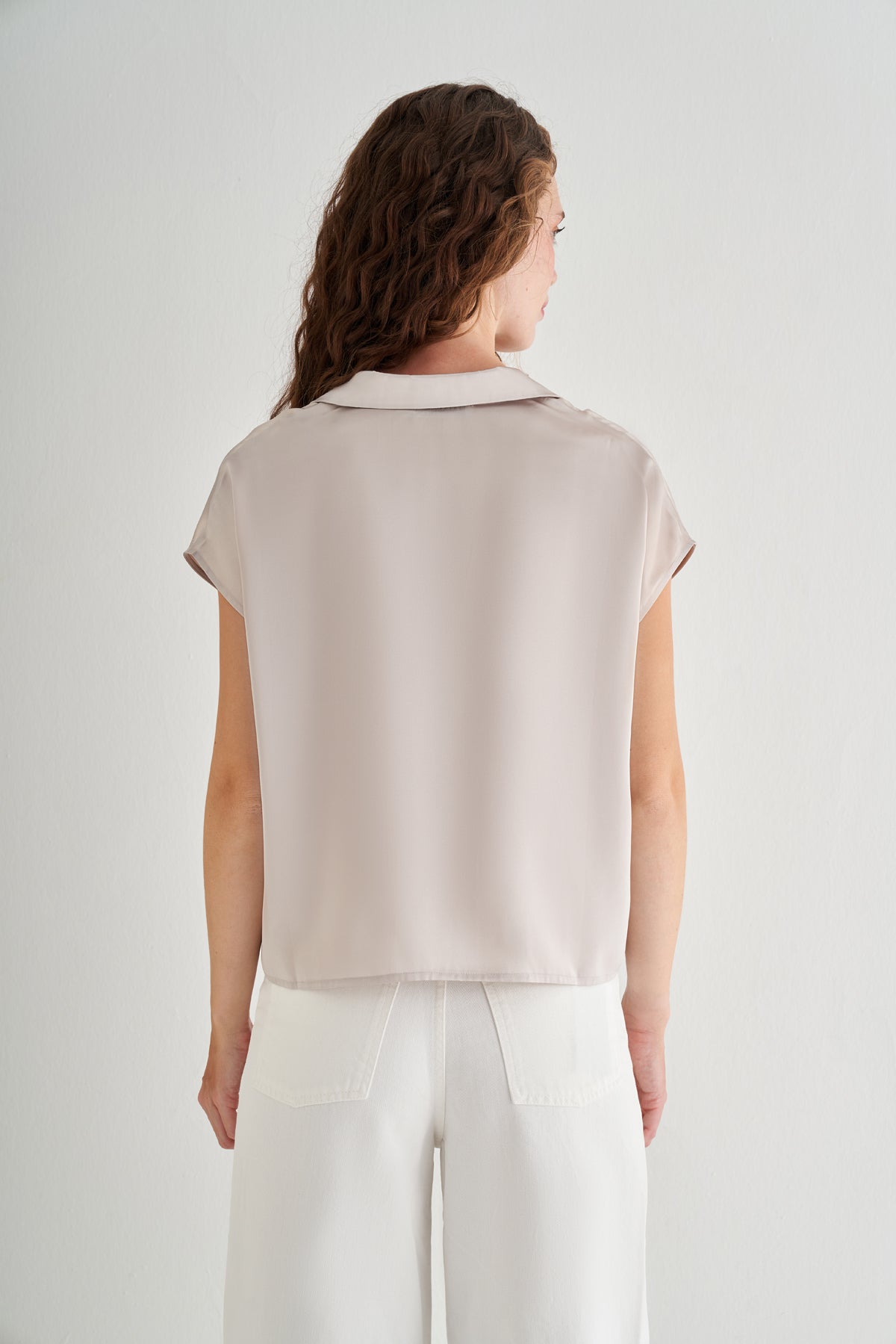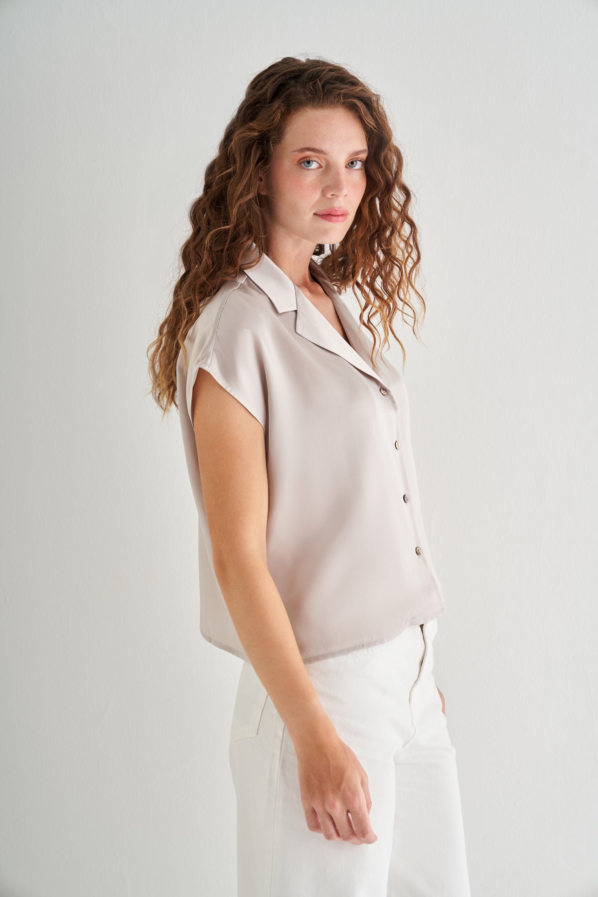 Açık gri tonunun dinginliğiyle, saf ipeğin ışığı yakalayan yapısı bu zamansız parçada buluşuyor. Hafifliğiyle öne çıkan bu kolsuz gömlek, sade ama etkileyici bir ifade arayanlar için özenle tasarlandı. Gün boyu konfor sağlarken, duru ve net bir stil yansıtır.