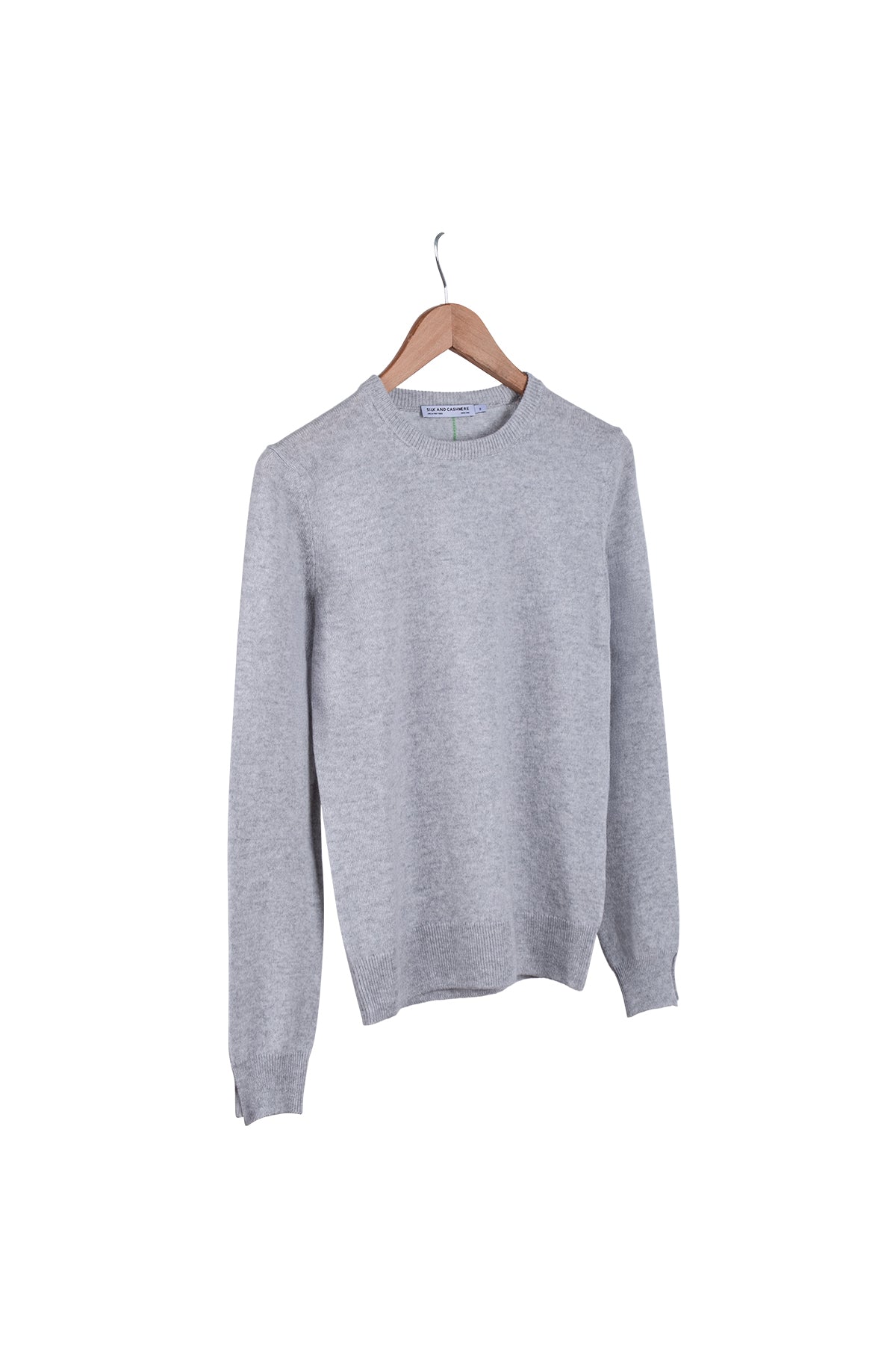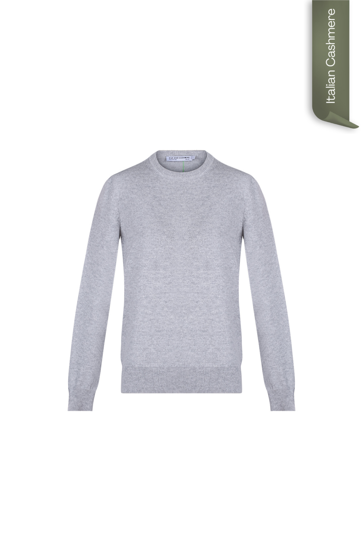 Açık Gri Franca Saf Kaşmir Bisiklet Yaka Kazak