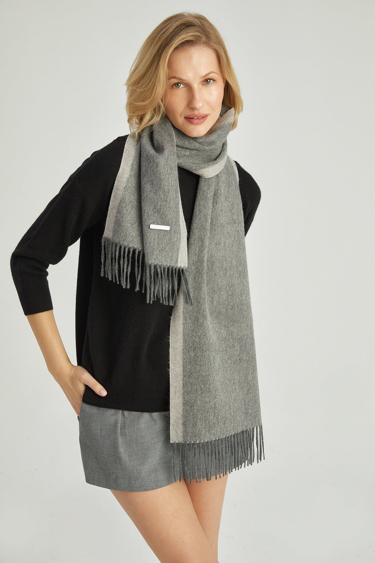 Açık gri tonlarının doğal zarafetiyle tasarlanmış bu saf kaşmir atkı, üstün kalitesi ve modern çizgileriyle her kombine uyum sağlar. %100 kaşmir dokusu, cildinize yumuşak bir dokunuş sunarken, hafif ve nefes alabilir yapısıyla soğuk havalarda sıcak bir koruma sağlar. 30x180 cm ölçüsüyle konforlu bir kullanım alanı sunar, ister klasik ister sportif stilinizle mükemmel uyum yakalar. Atkının zarif geçişli açık gri tonu ve saçaklı uç detayları, zamansız bir estetik sunar. İster günlük hayatınızda ister özel anlarınızda kullanabilirsiniz.