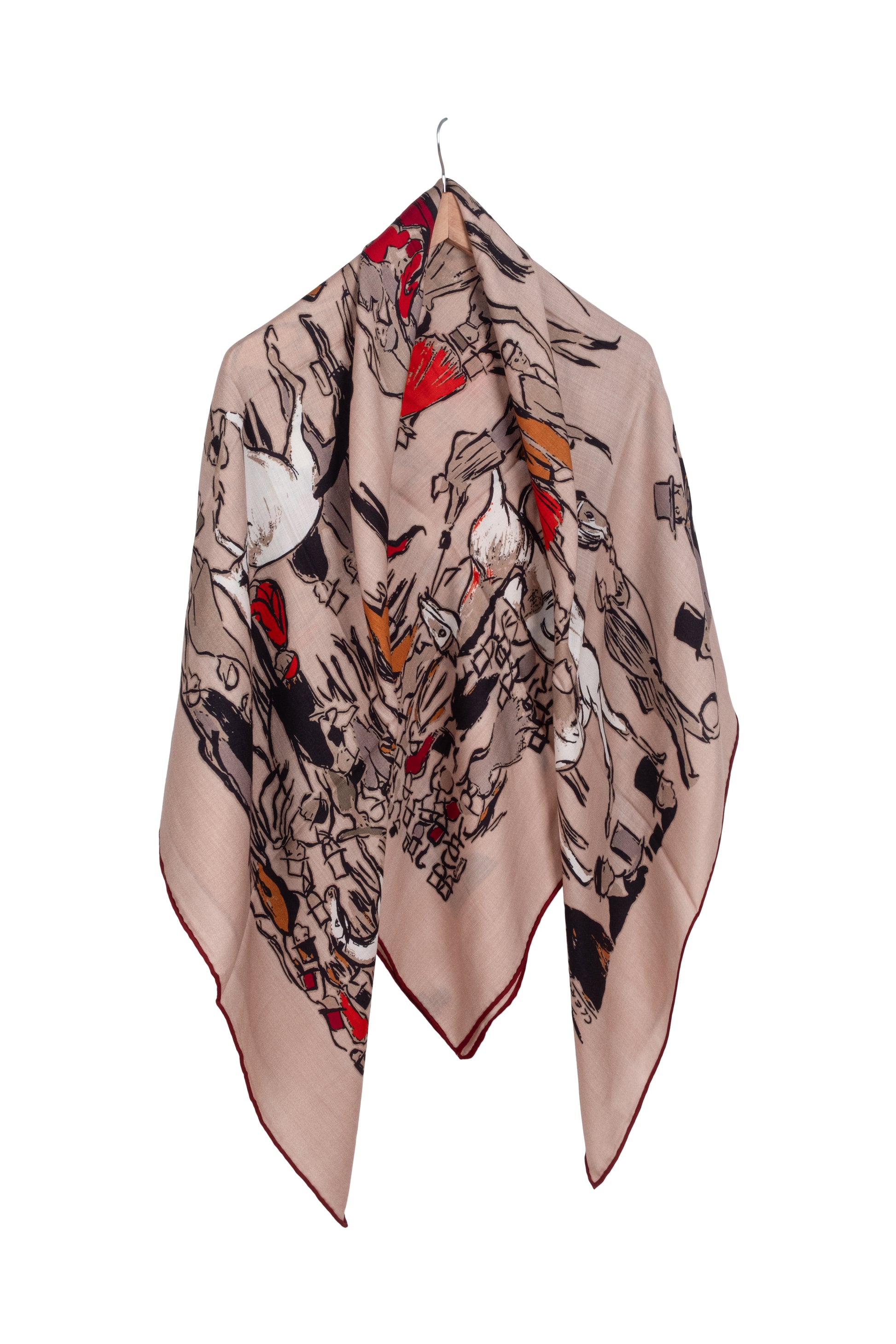 Açık Kahve Linda Saf Kaşmir Desenli Kare Eşarp 140x140 cm