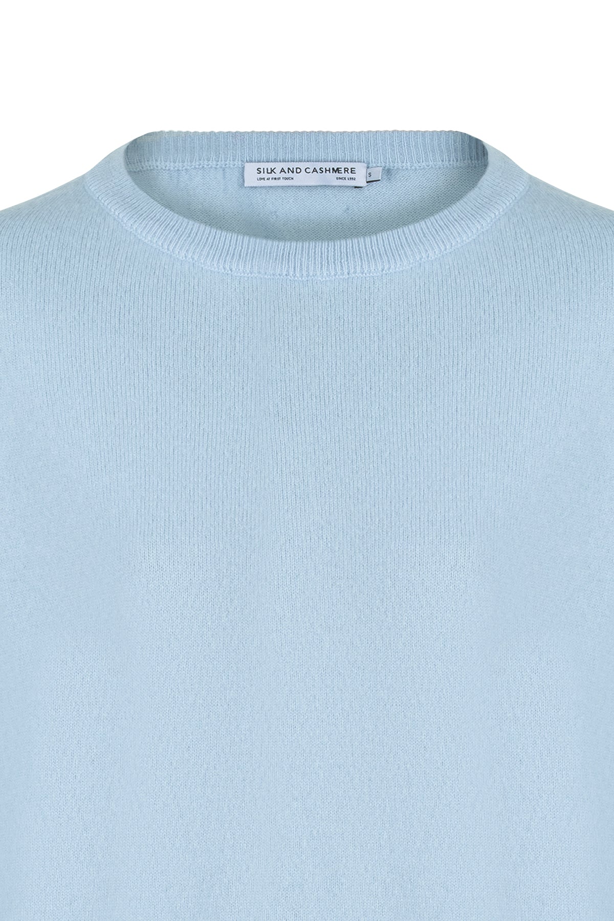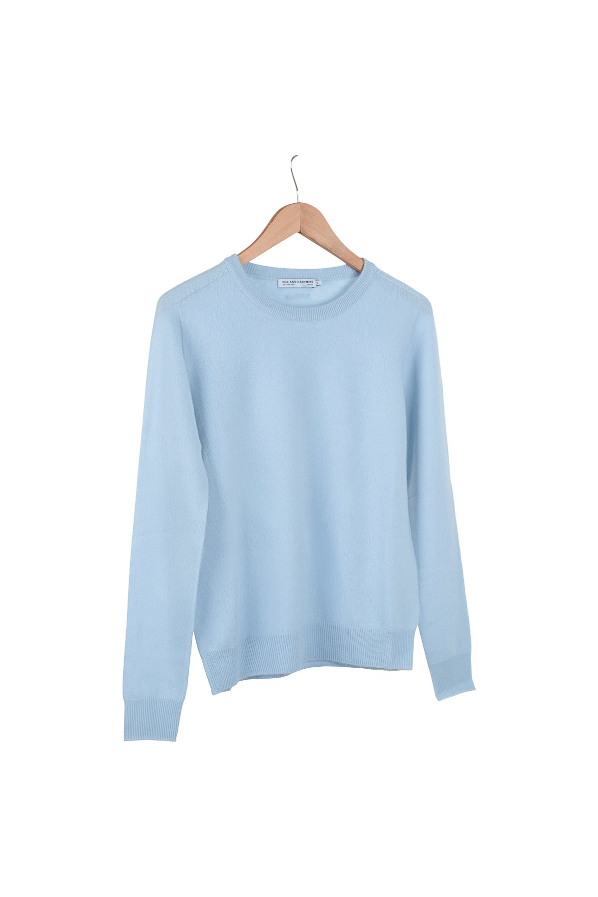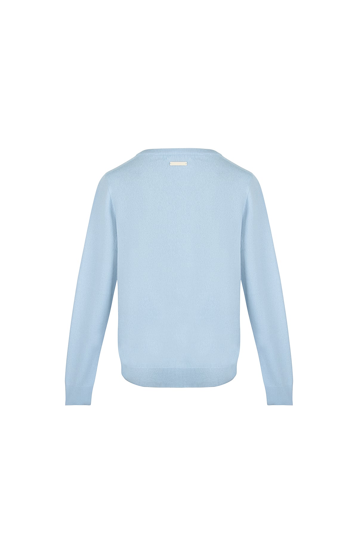 Açık Mavi Alexia Saf Kaşmir Yuvarlak Yaka Kazak