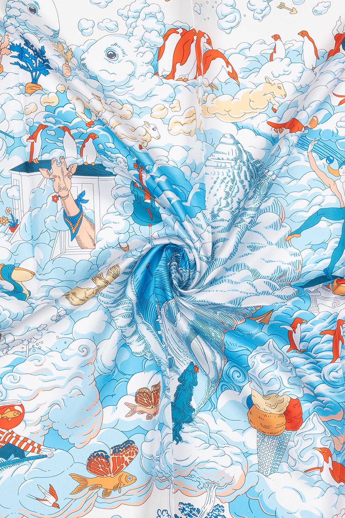 Açık Mavi Beyaz Lara Saf İpek Baskılı Eşarp 90x90 cm