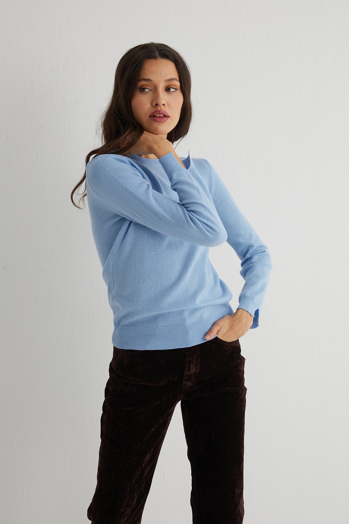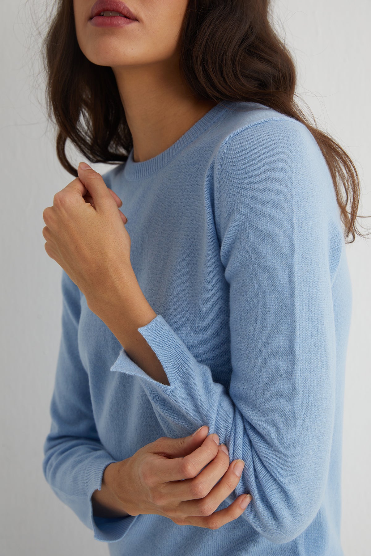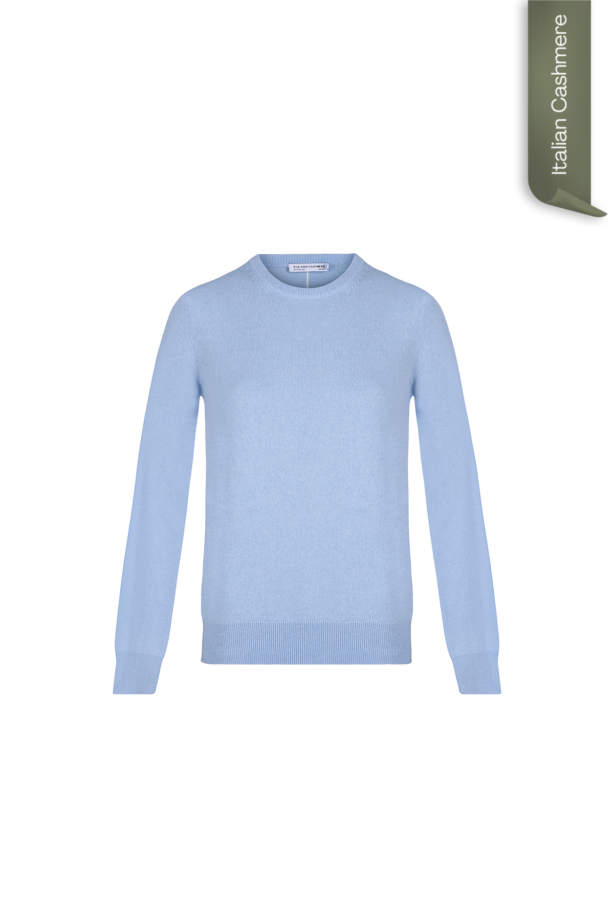 Açık Mavi Franca Saf Kaşmir Bisiklet Yaka Kazak
