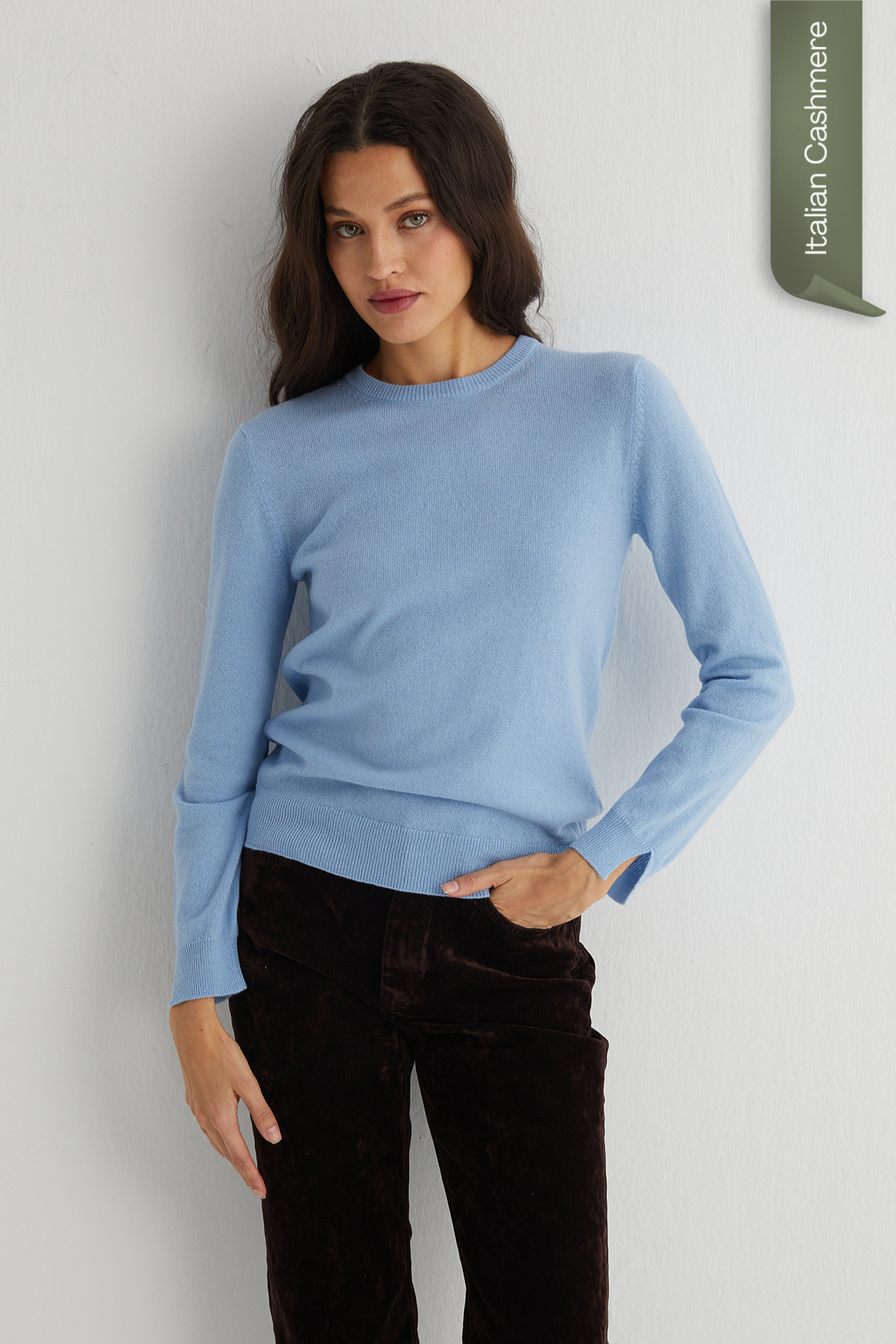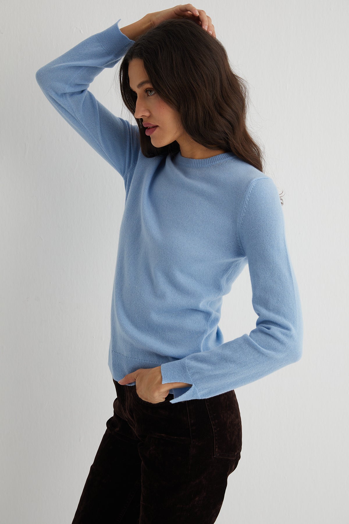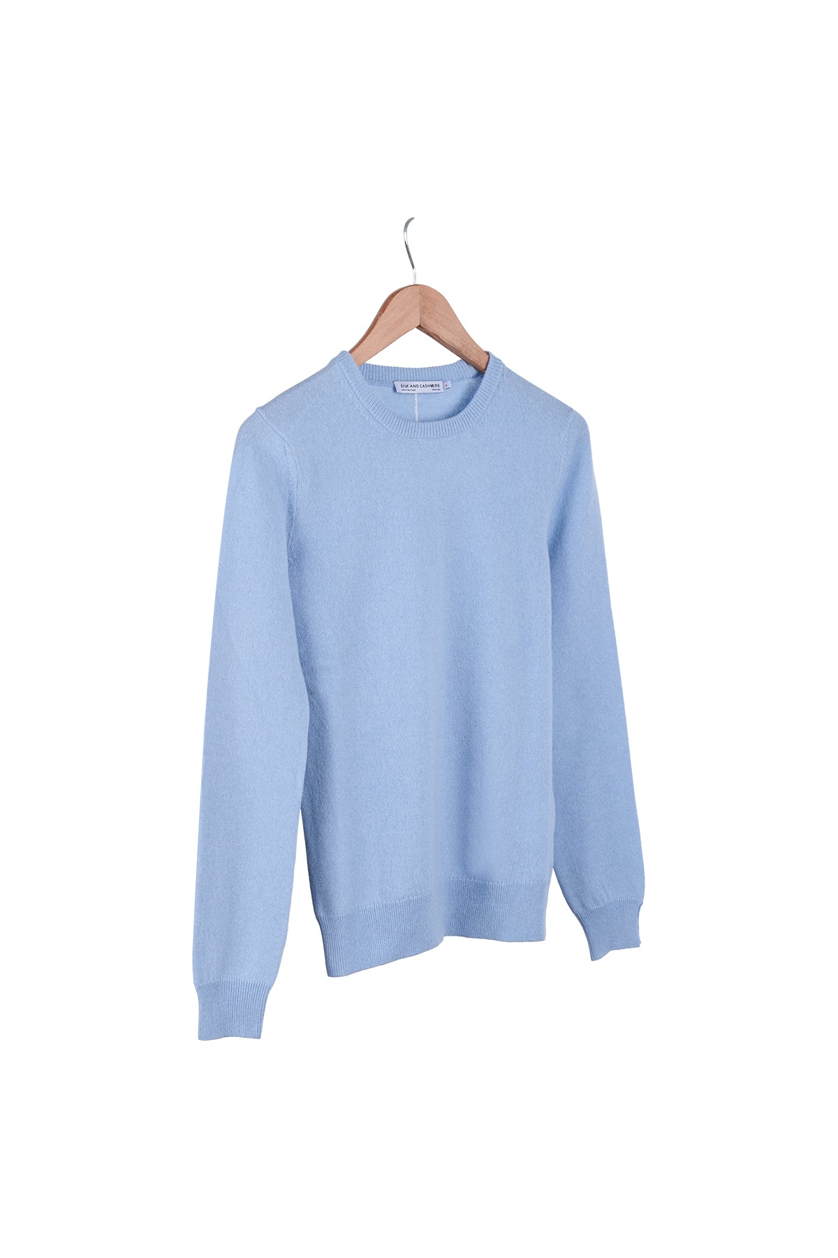 Açık Mavi Franca Saf Kaşmir Bisiklet Yaka Kazak
