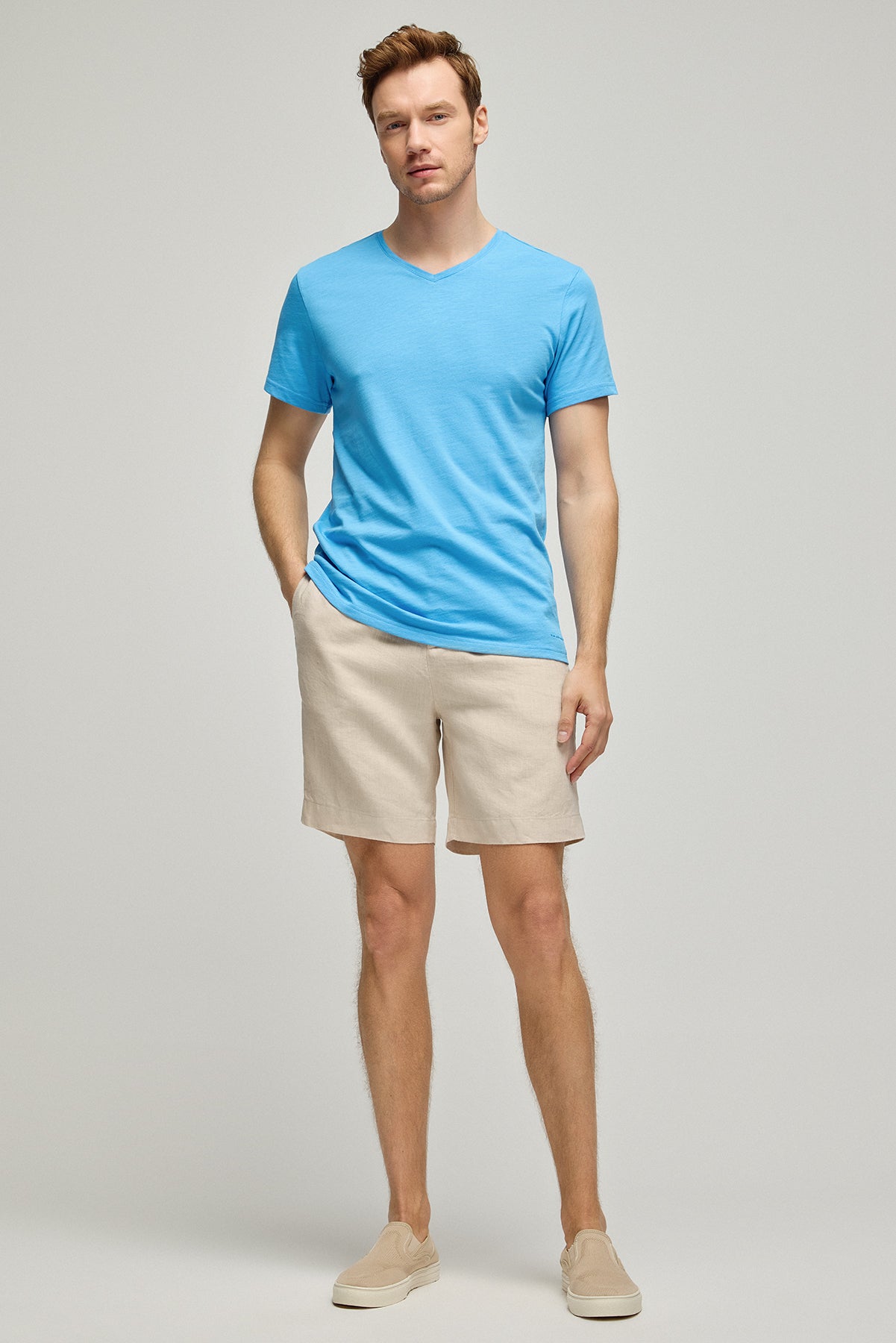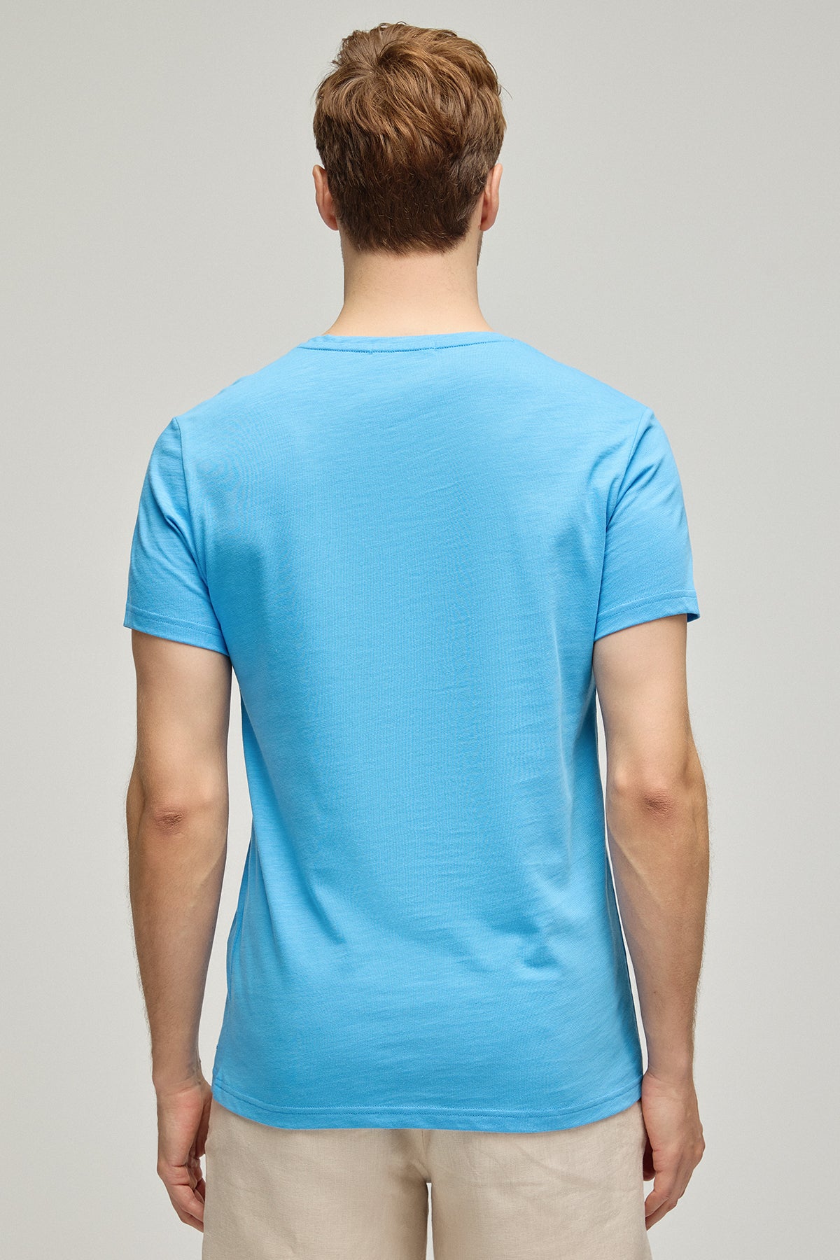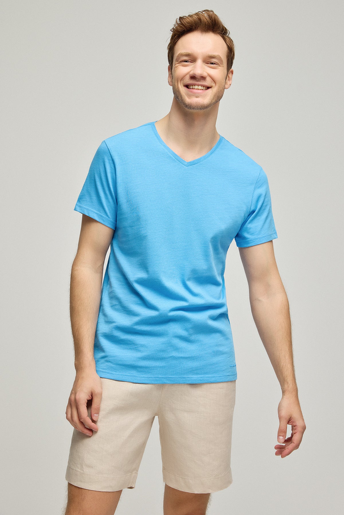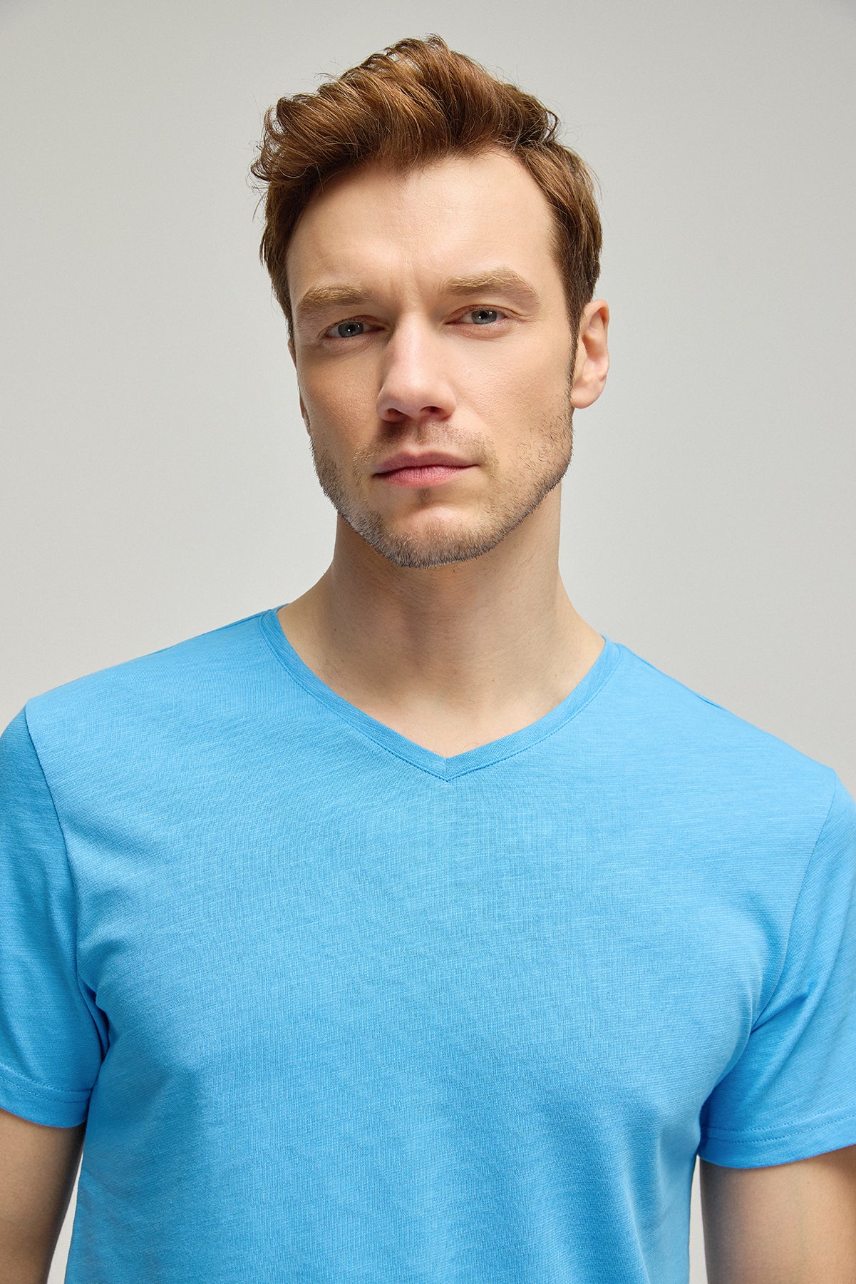 Açık Mavi Saf Pamuk Marc V Yaka Erkek Basic Tişört