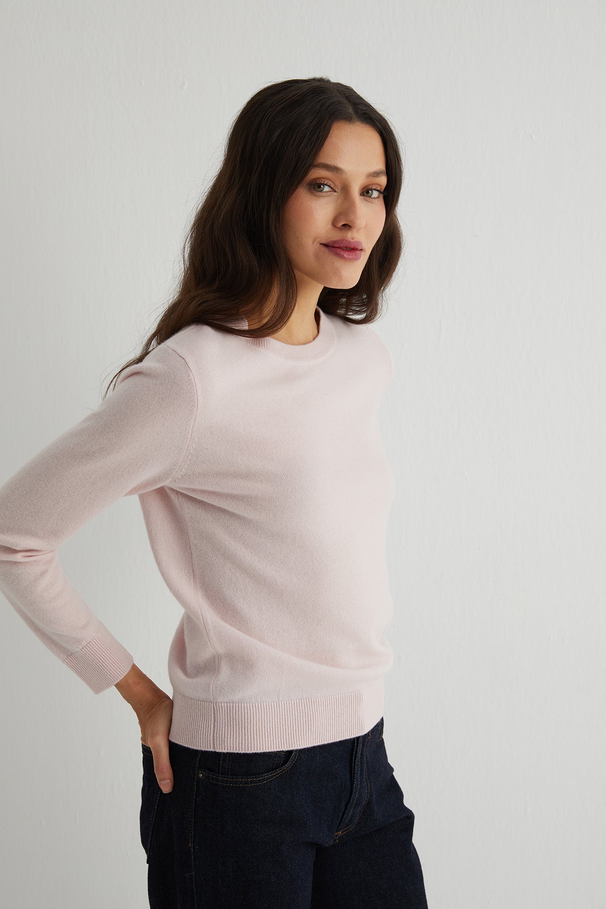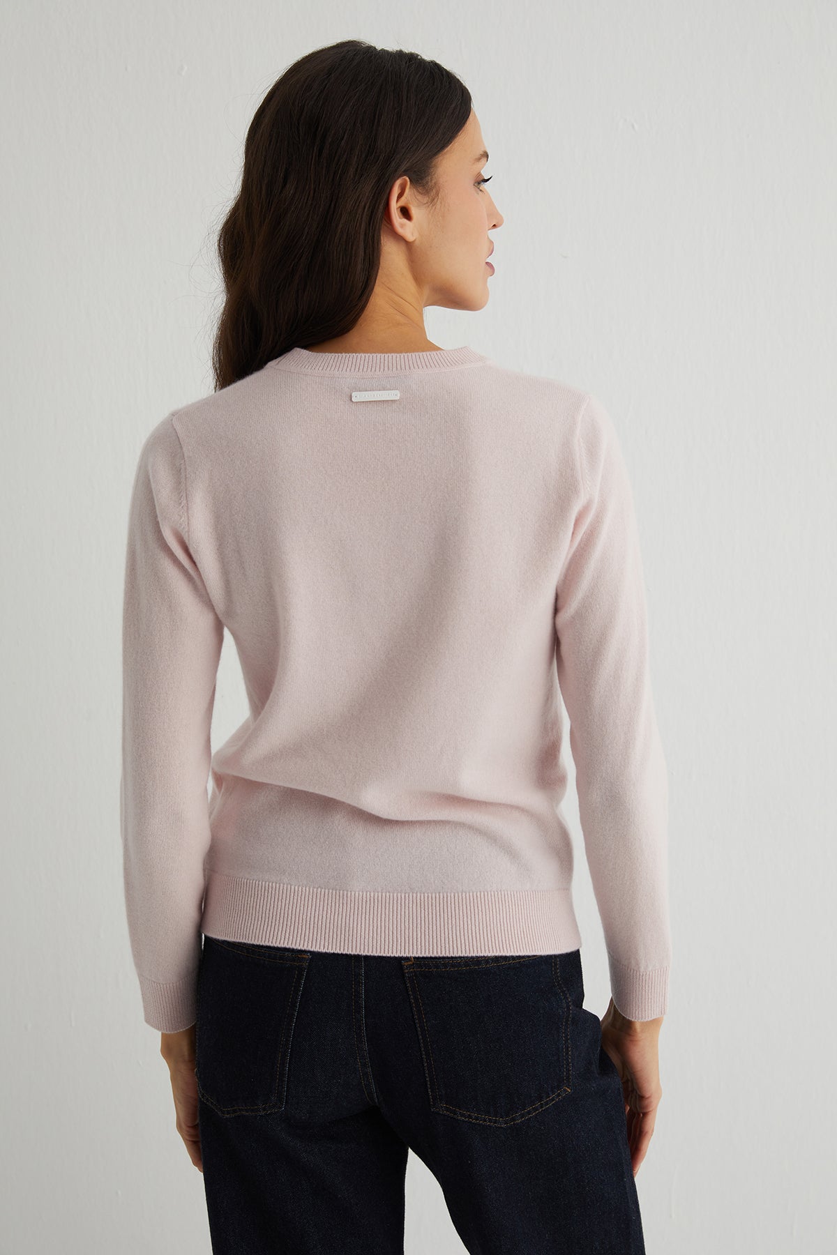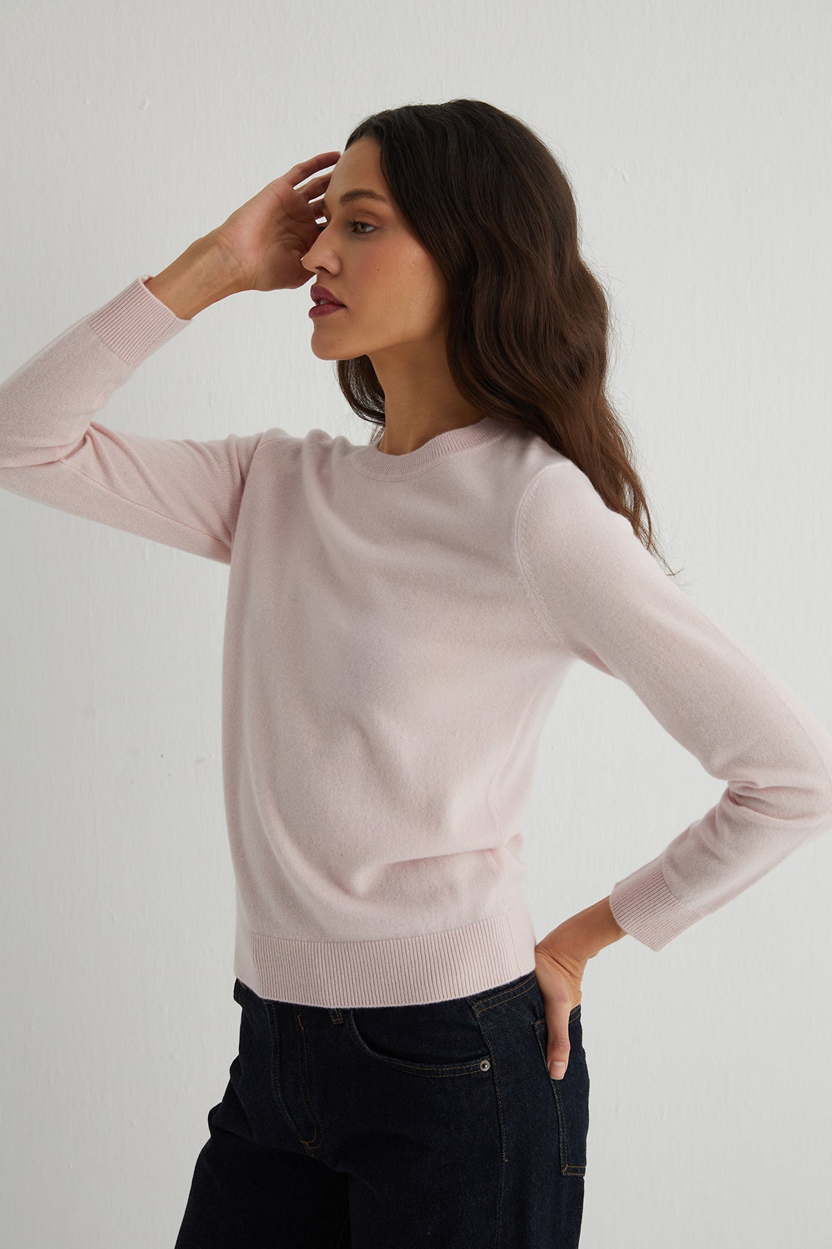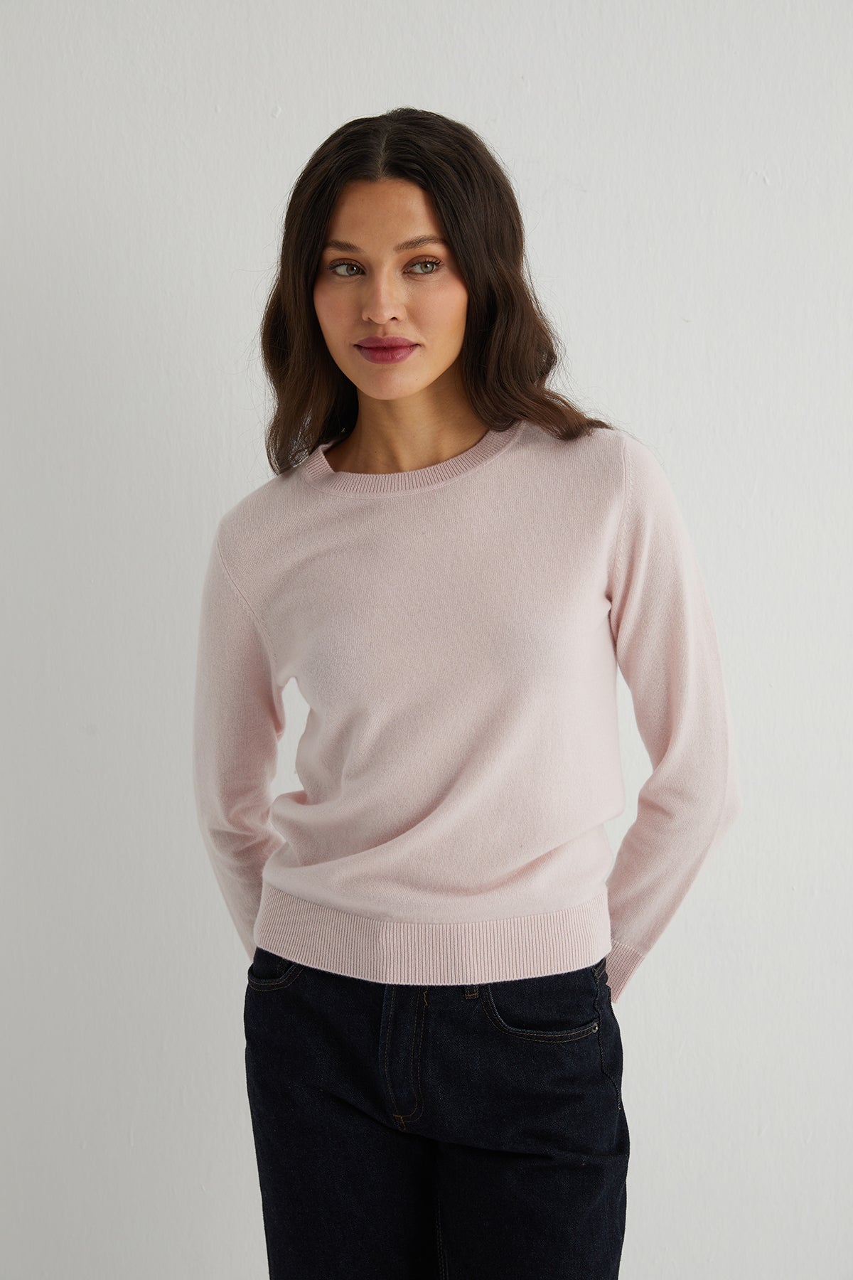 Açık Pembe Agata Saf Kaşmir Yuvarlak Yaka Kazak