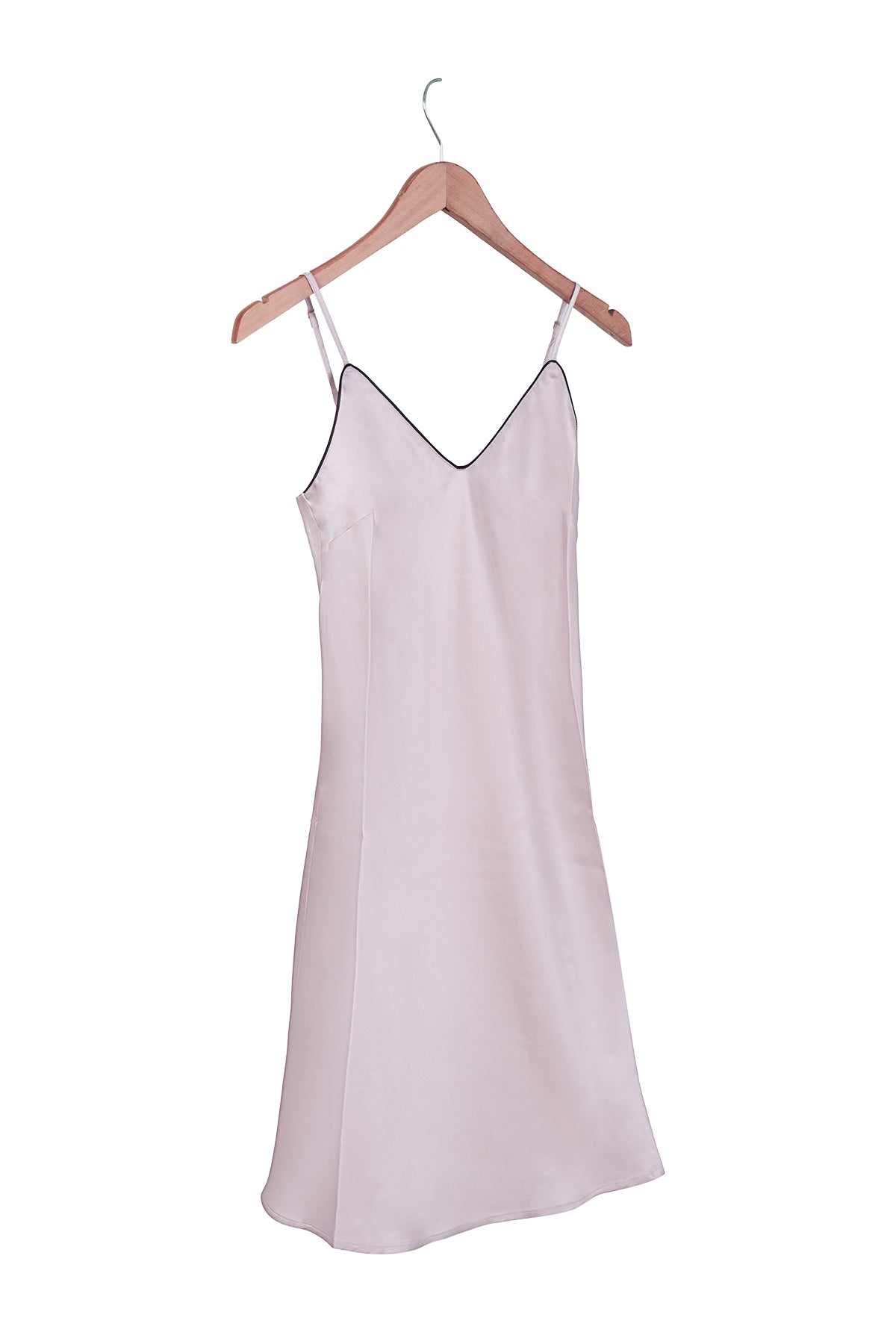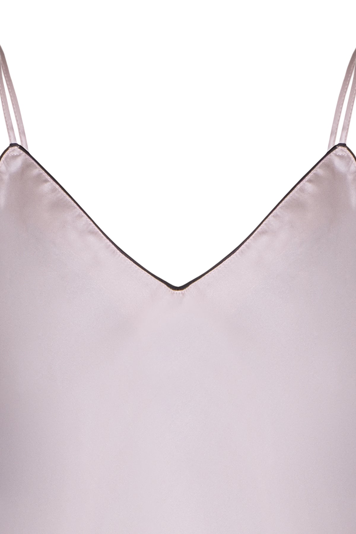 İnce askılı ve V yaka formu, sade ve zamansız bir siluet oluşturur.