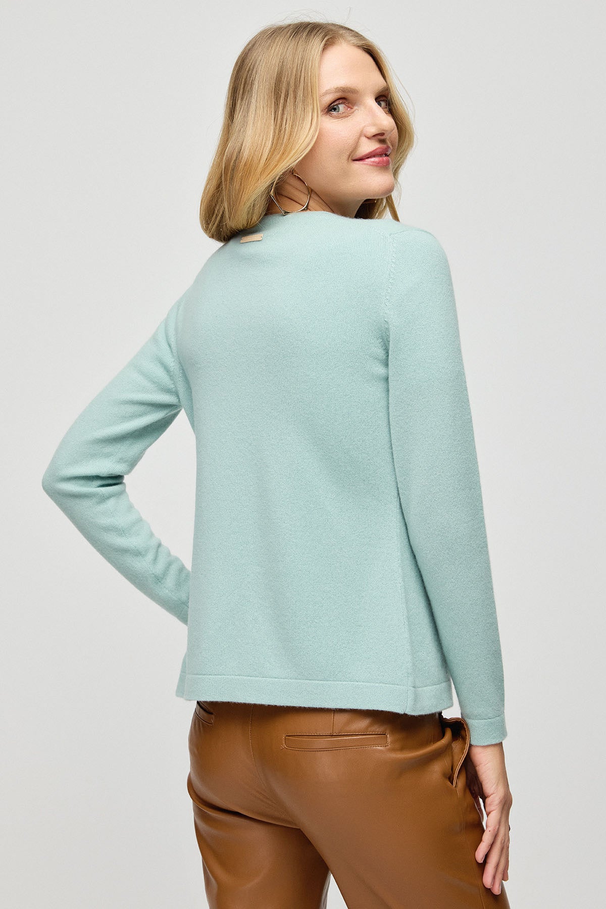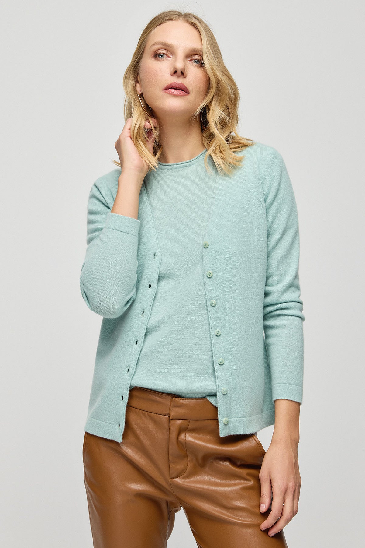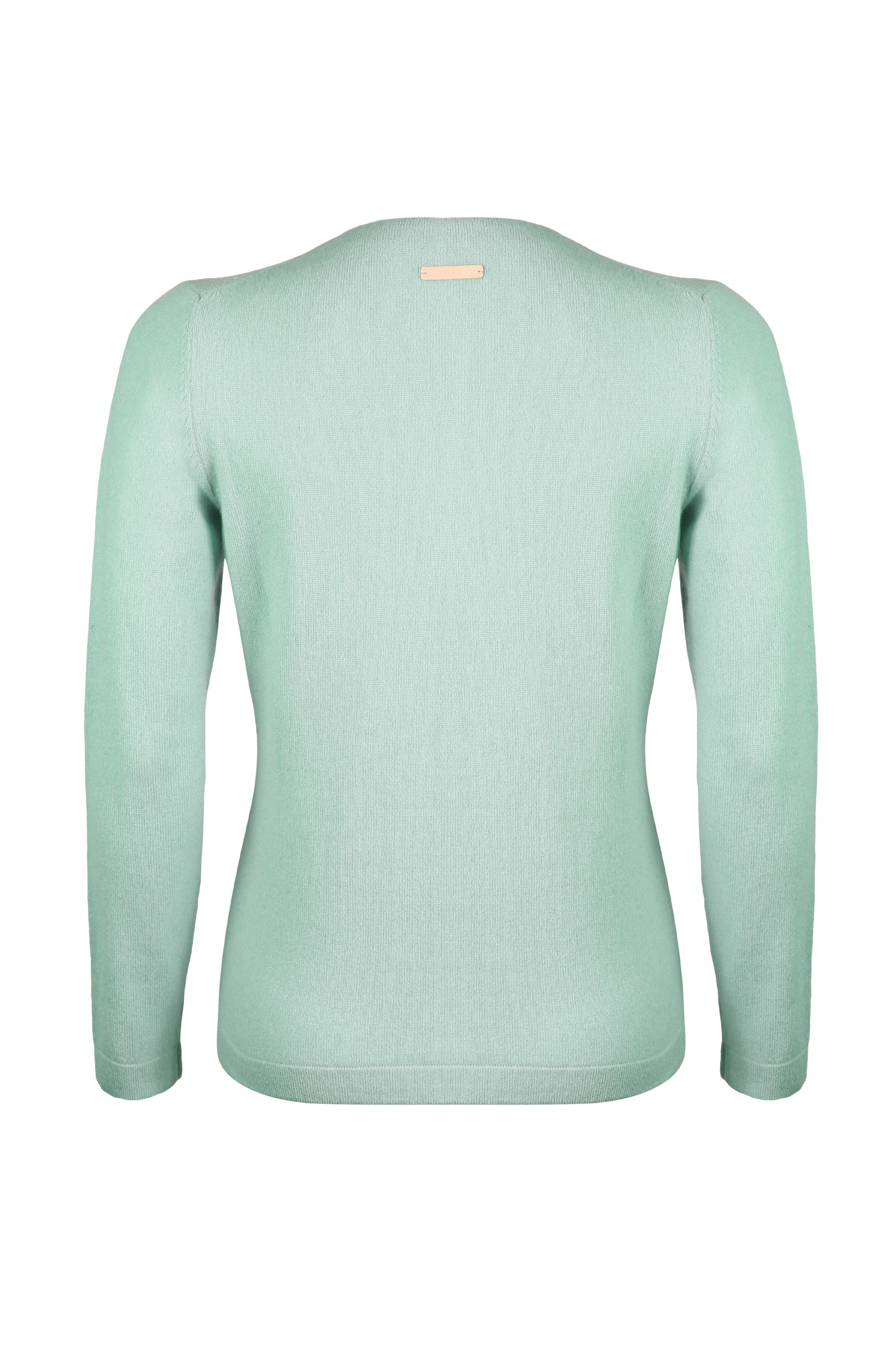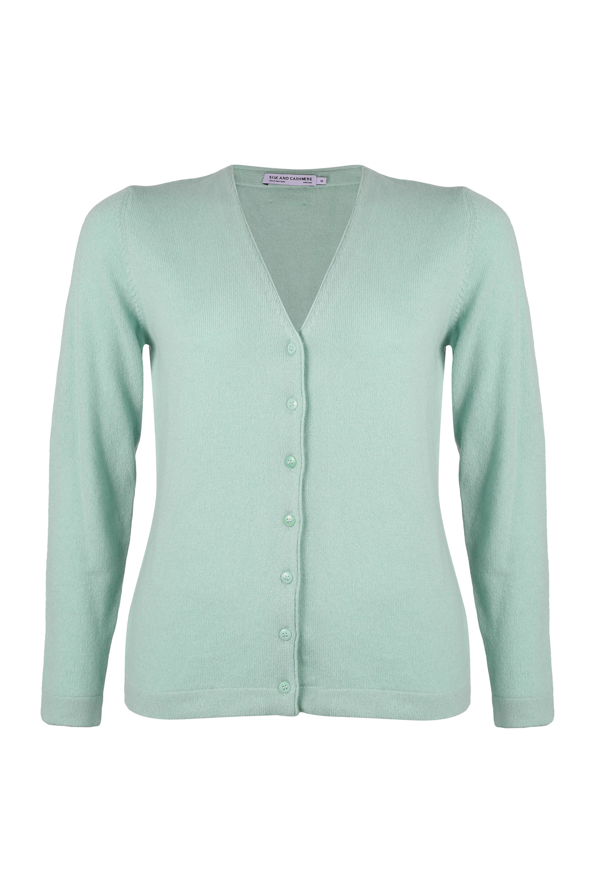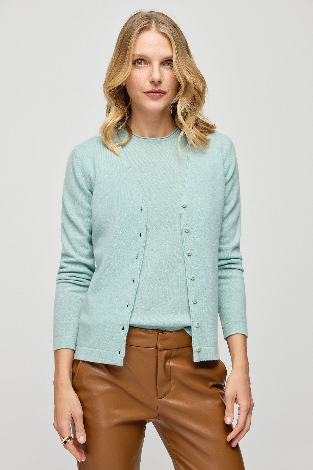 Açık Yeşil Saf Kaşmir Bar Basic V Yaka Kadın Hırka
