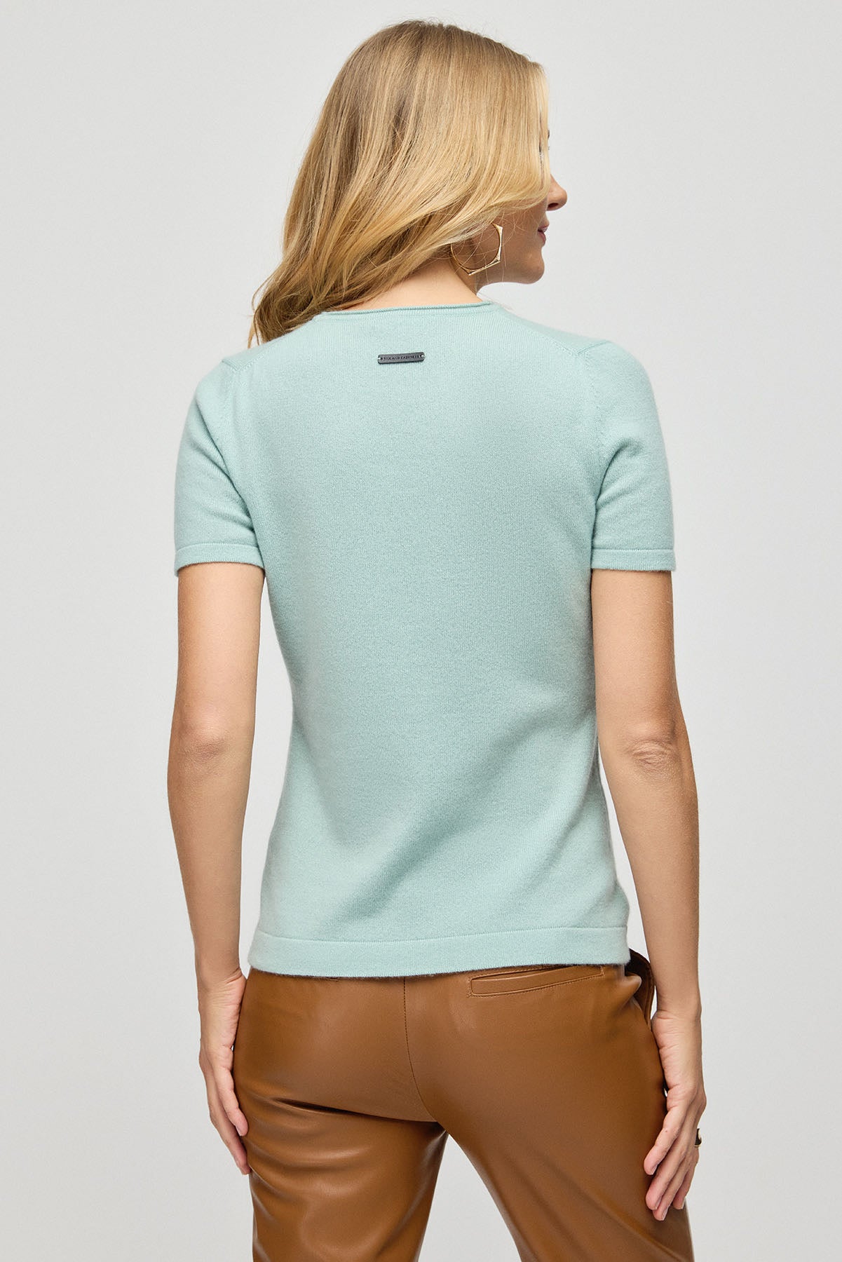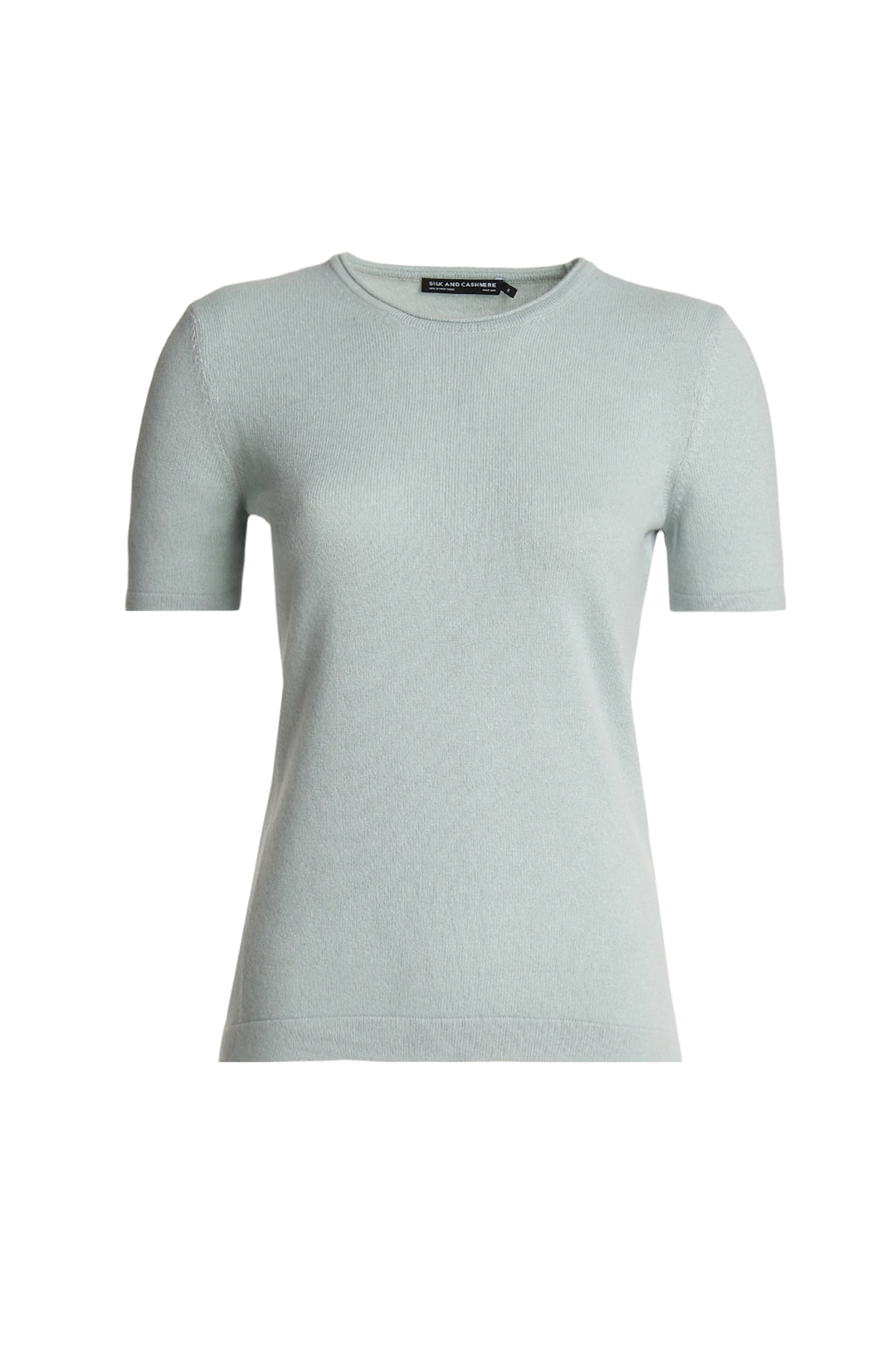Açık Yeşil Saf Kaşmir Basic Bisiklet Yaka Kısa Kollu Kadın Triko