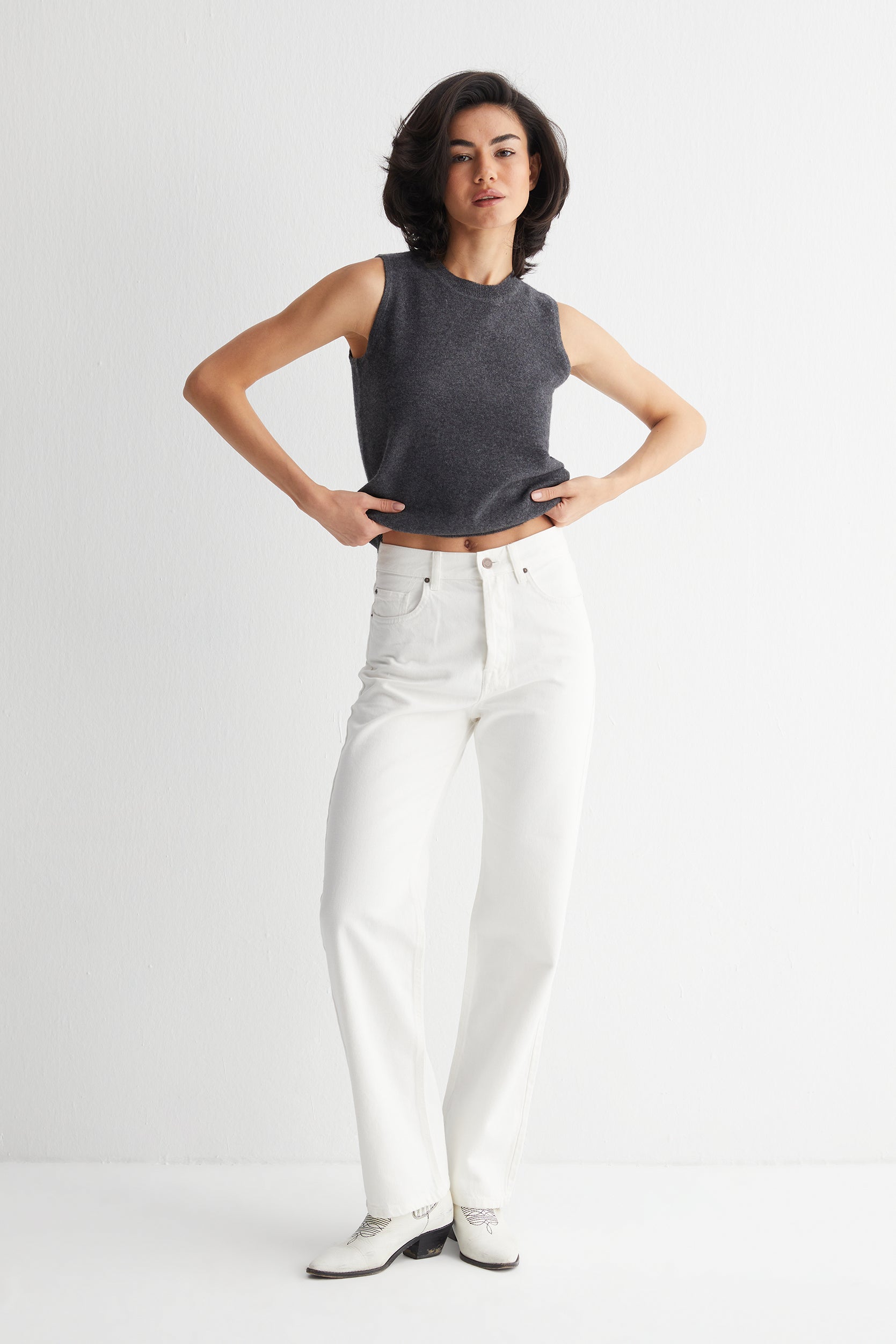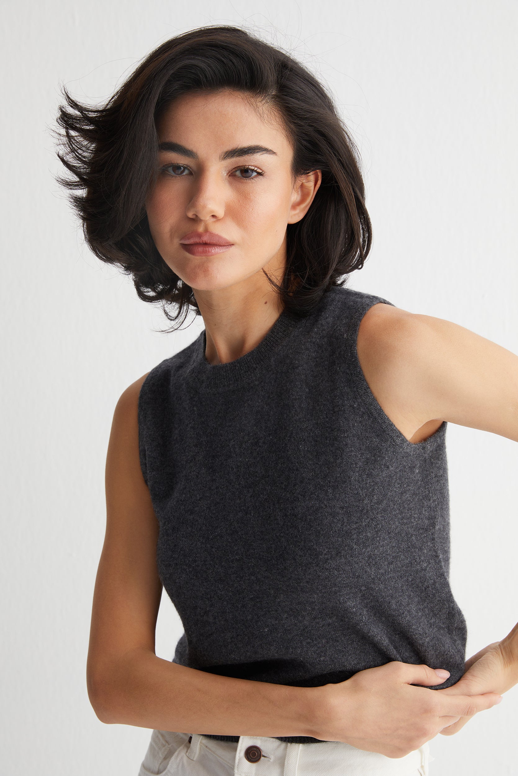 Antrasit Alexia Saf Kaşmir Bisiklet Yaka Kolsuz Triko