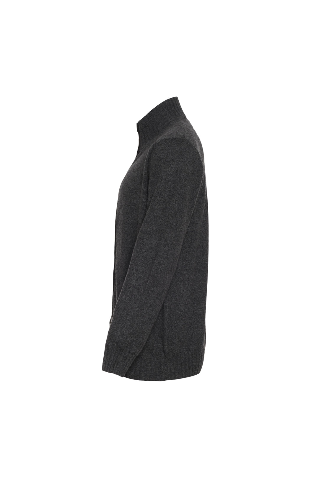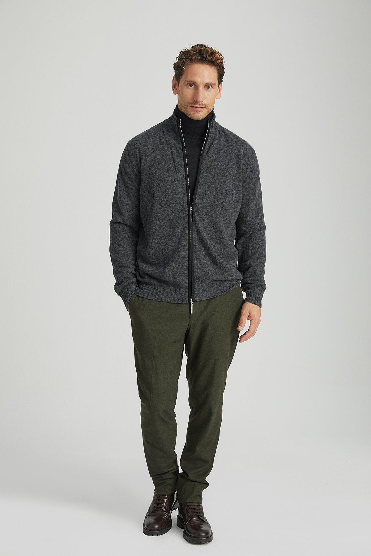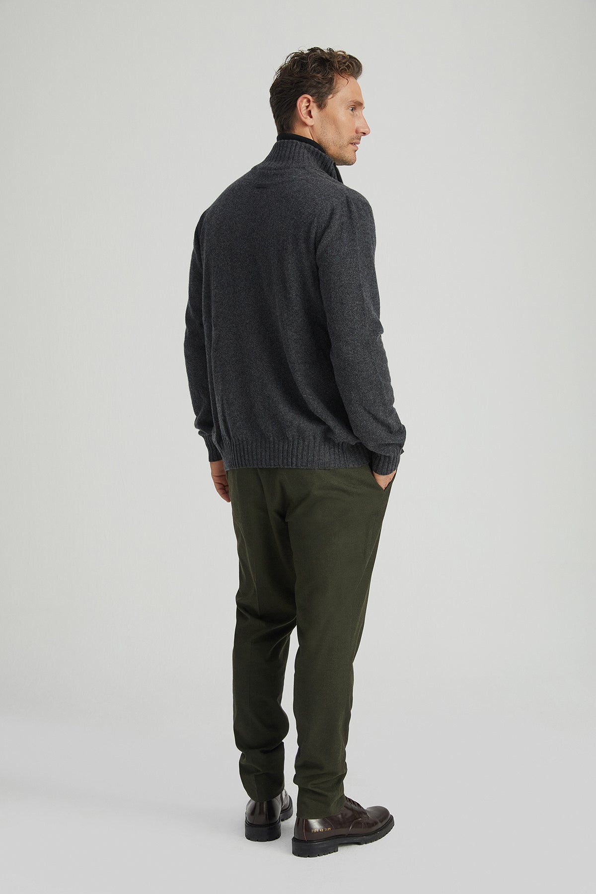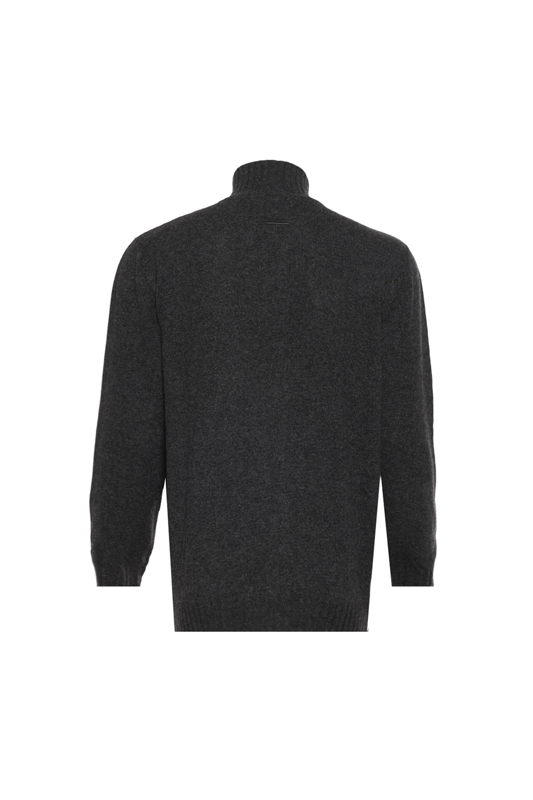 Antrasit Lacivert Saf Kaşmir Deri Biyeli Yarım Balıkçı Yaka Fermuarlı Erkek Hırka