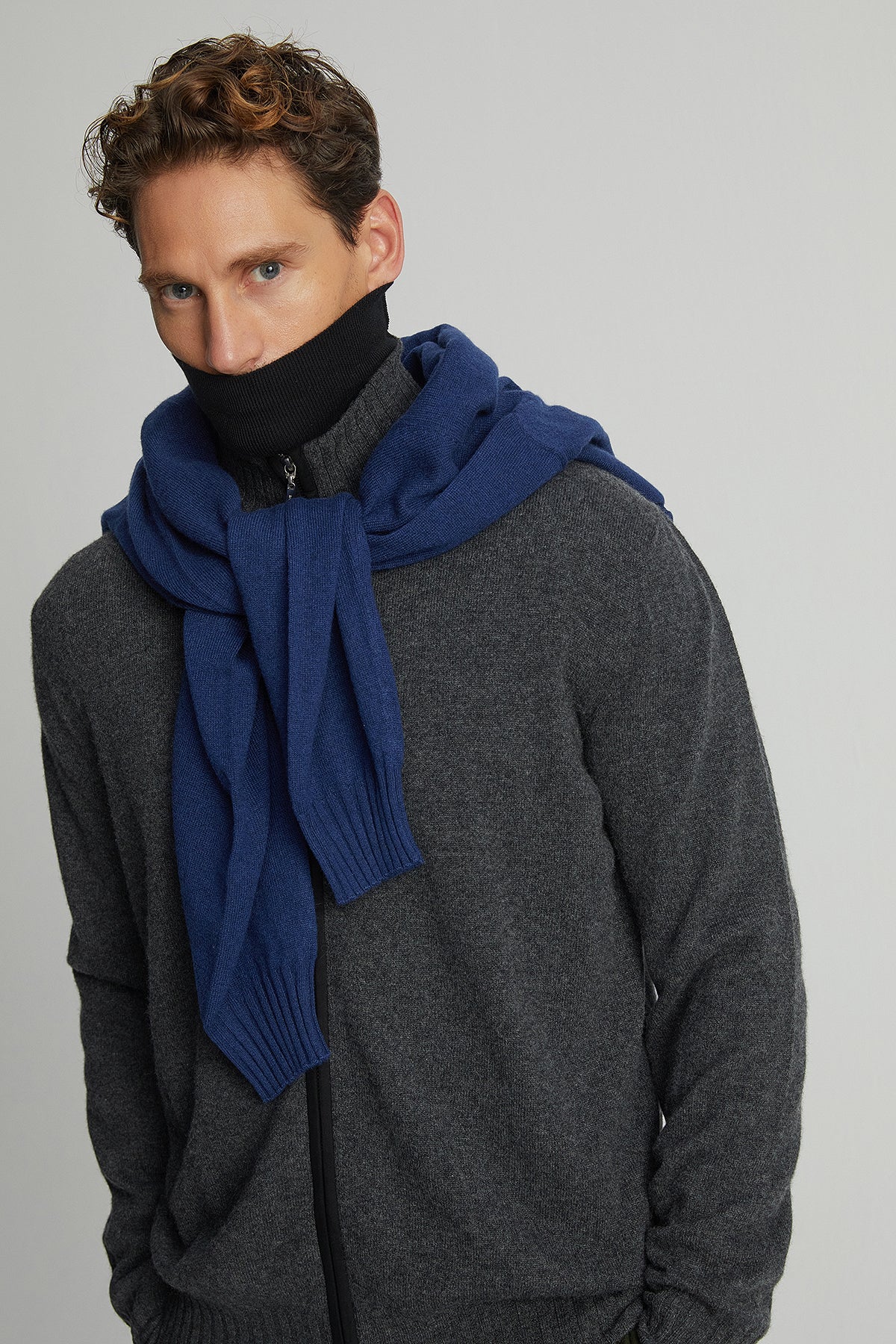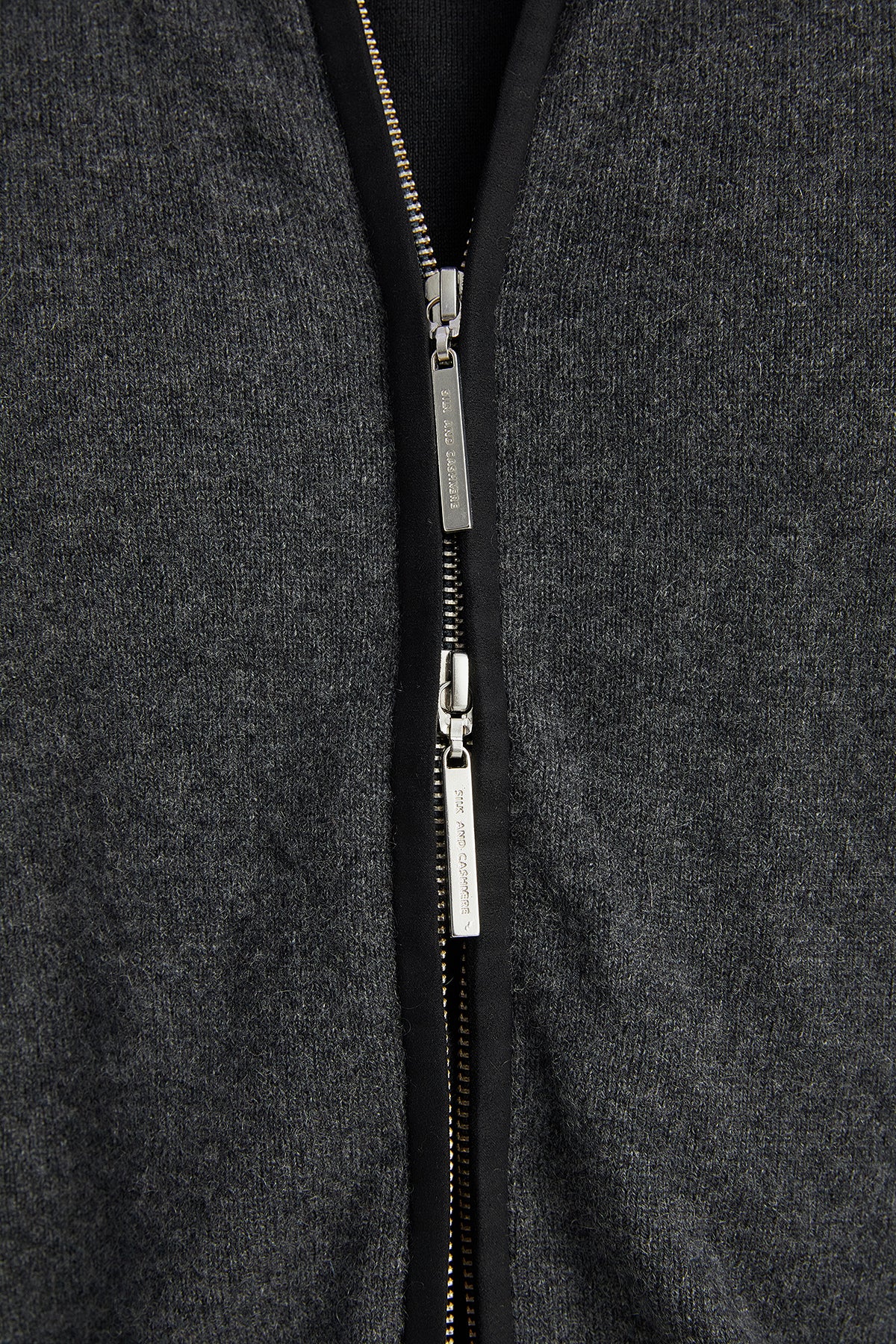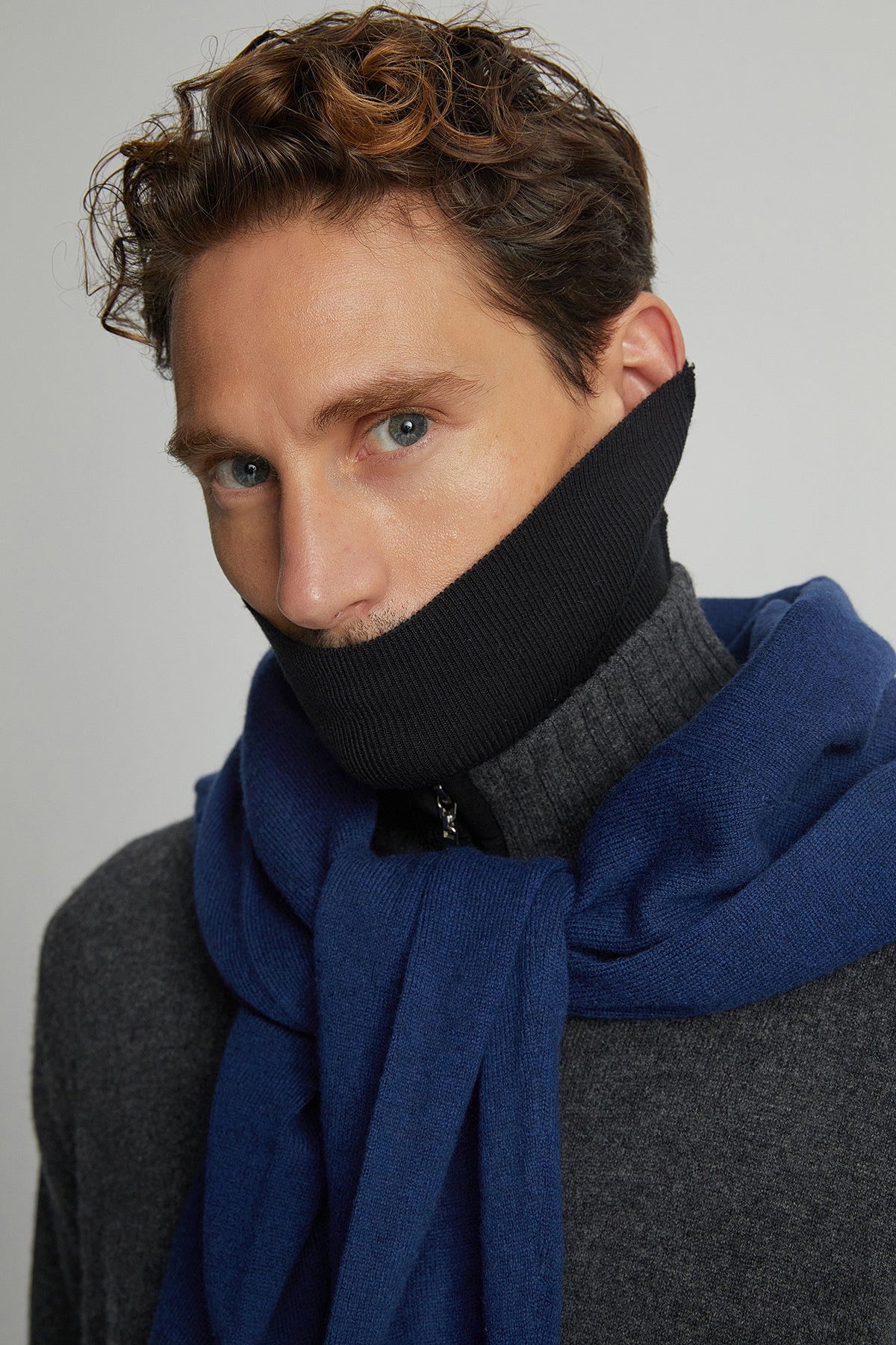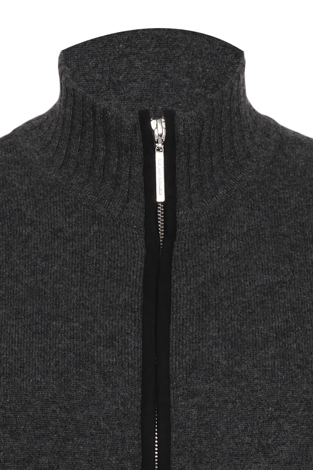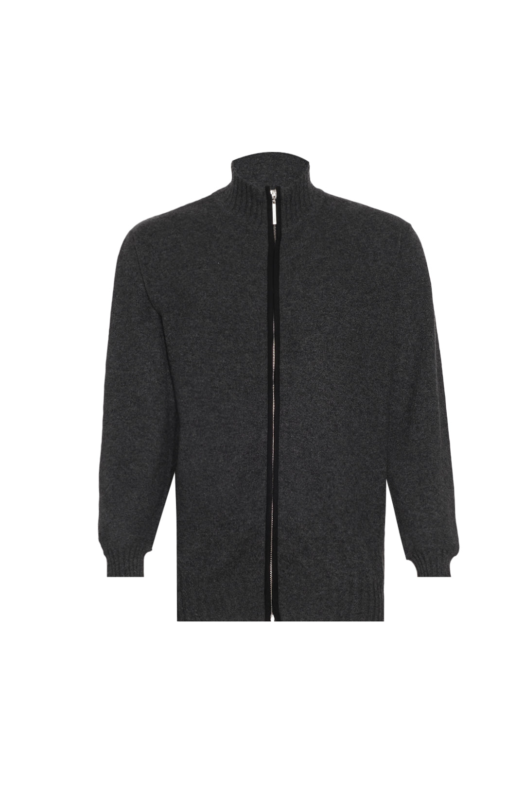 Antrasit Lacivert Saf Kaşmir Deri Biyeli Yarım Balıkçı Yaka Fermuarlı Erkek Hırka