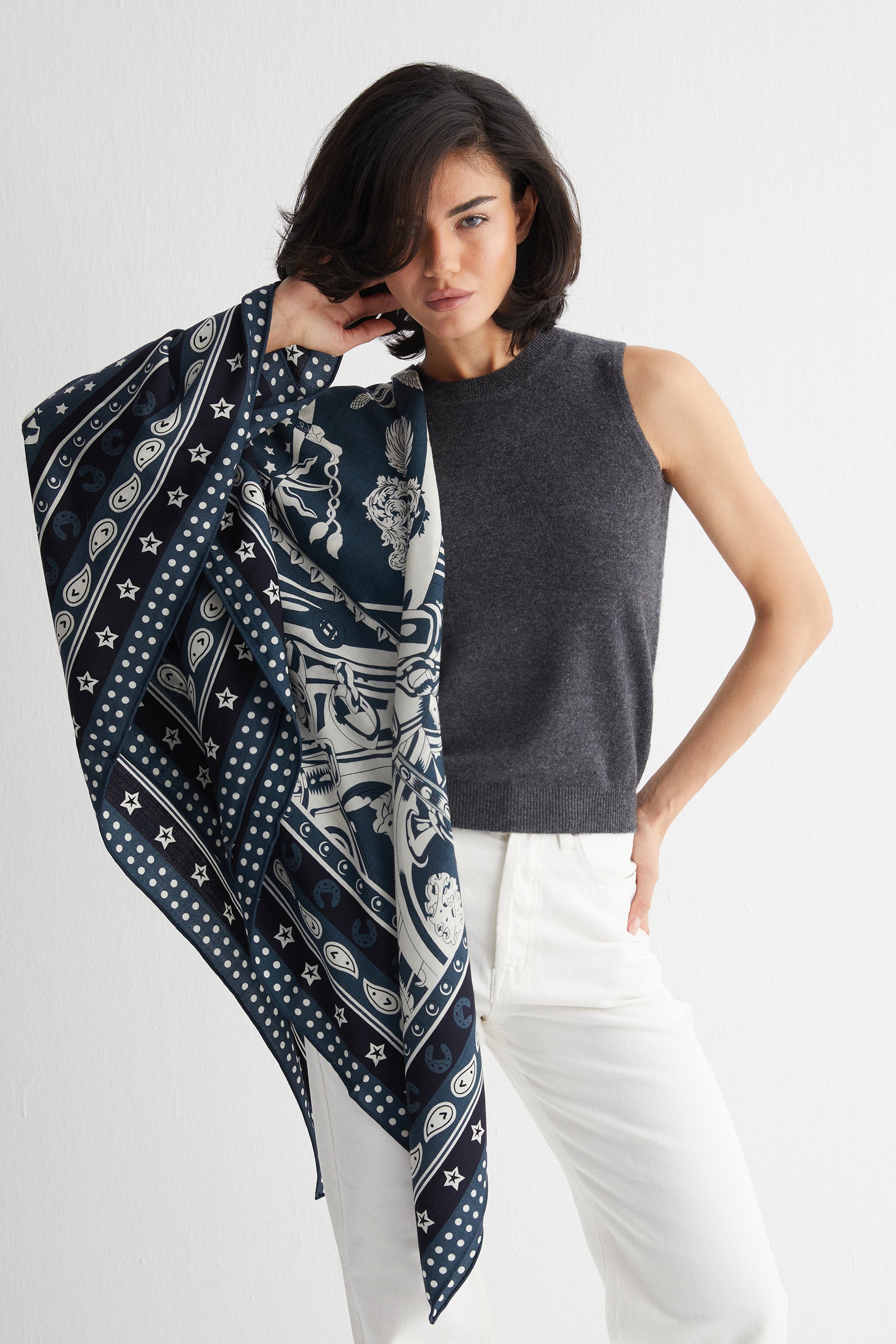 Antrasit Linda Kaşmir Desenli Kare Eşarp 140x140 cm