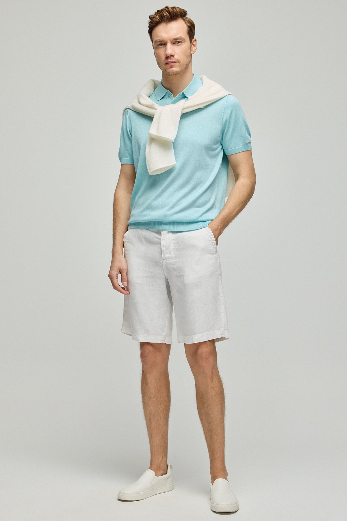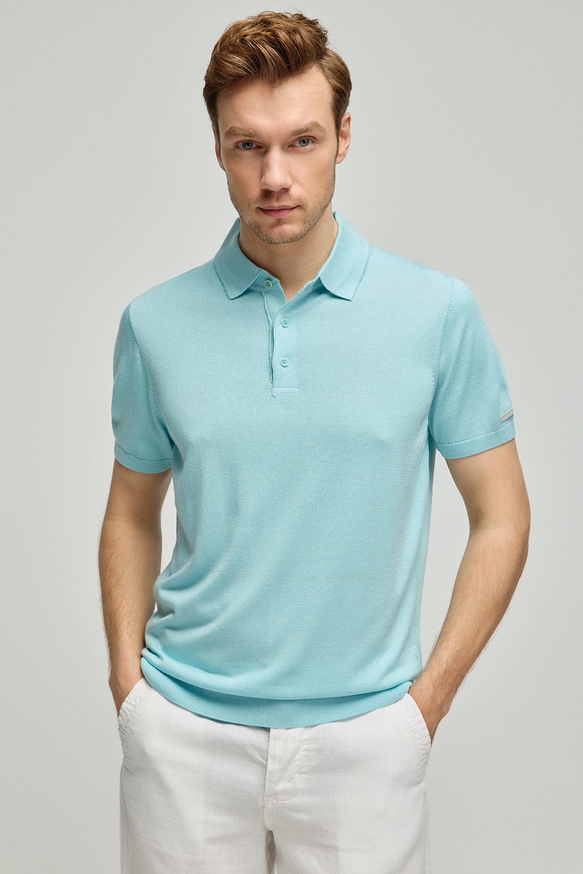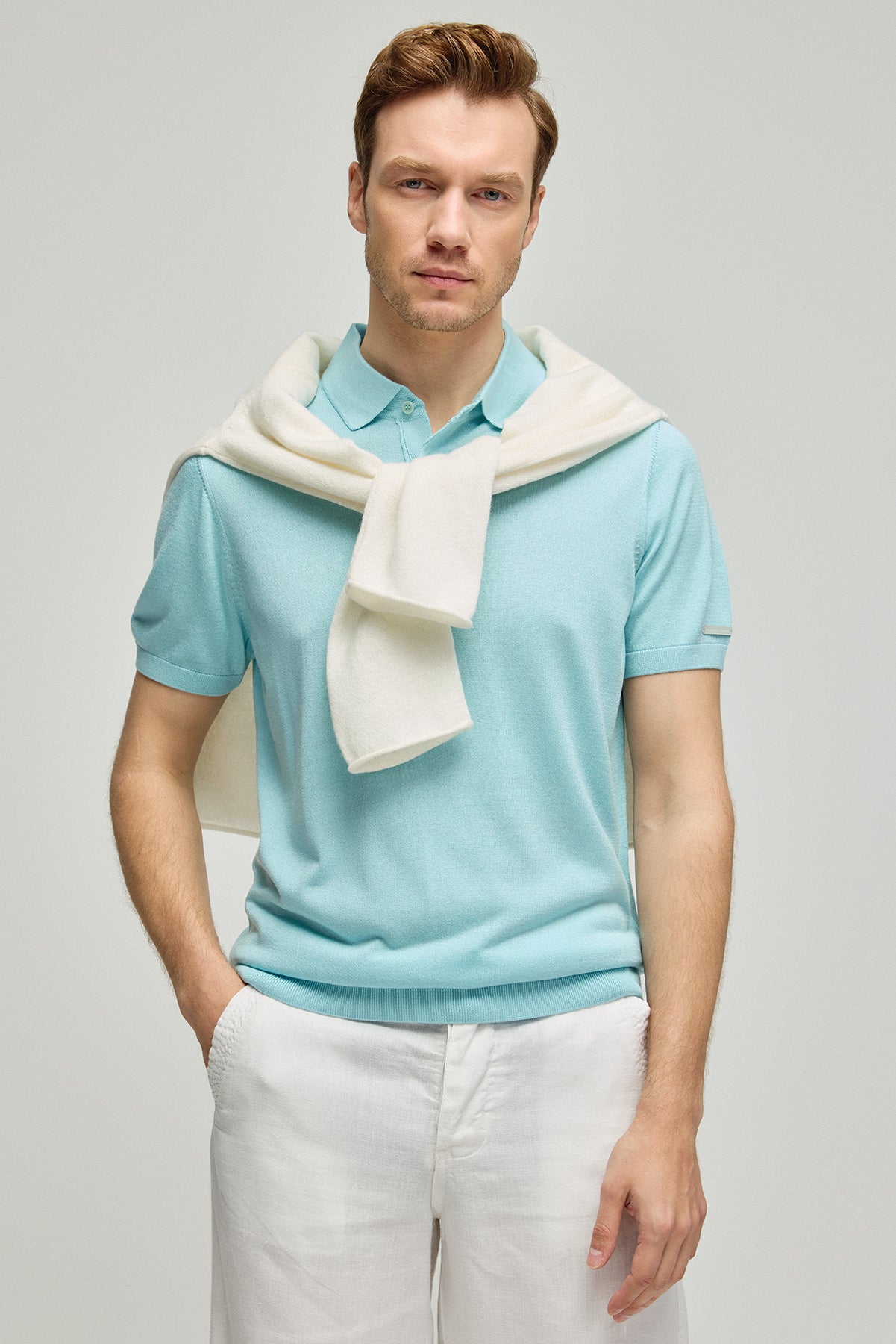 İpek kaşmir karışımı bu triko polo, rahatlığı ve zarafeti bir arada sunarak erkek giyiminde yeni bir sayfa açıyor. Aqua rengin sunduğu huzur verici etki, sofistike dokunuşlarla birleşiyor. Gündelik şıklığın yanı sıra konforlu bir deneyim vaat eden bu parça, gardırobunuzun vazgeçilmezlerinden olacak.