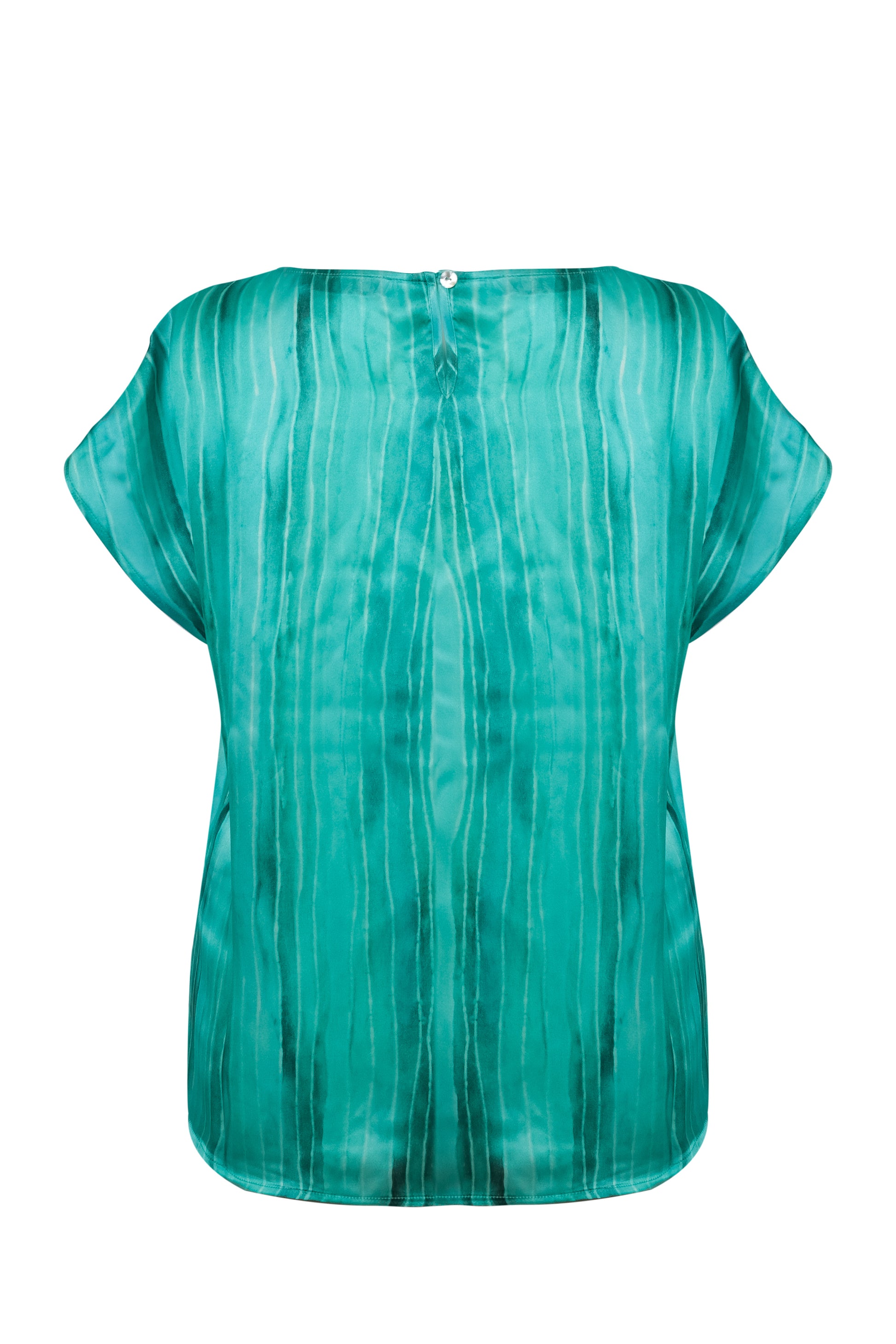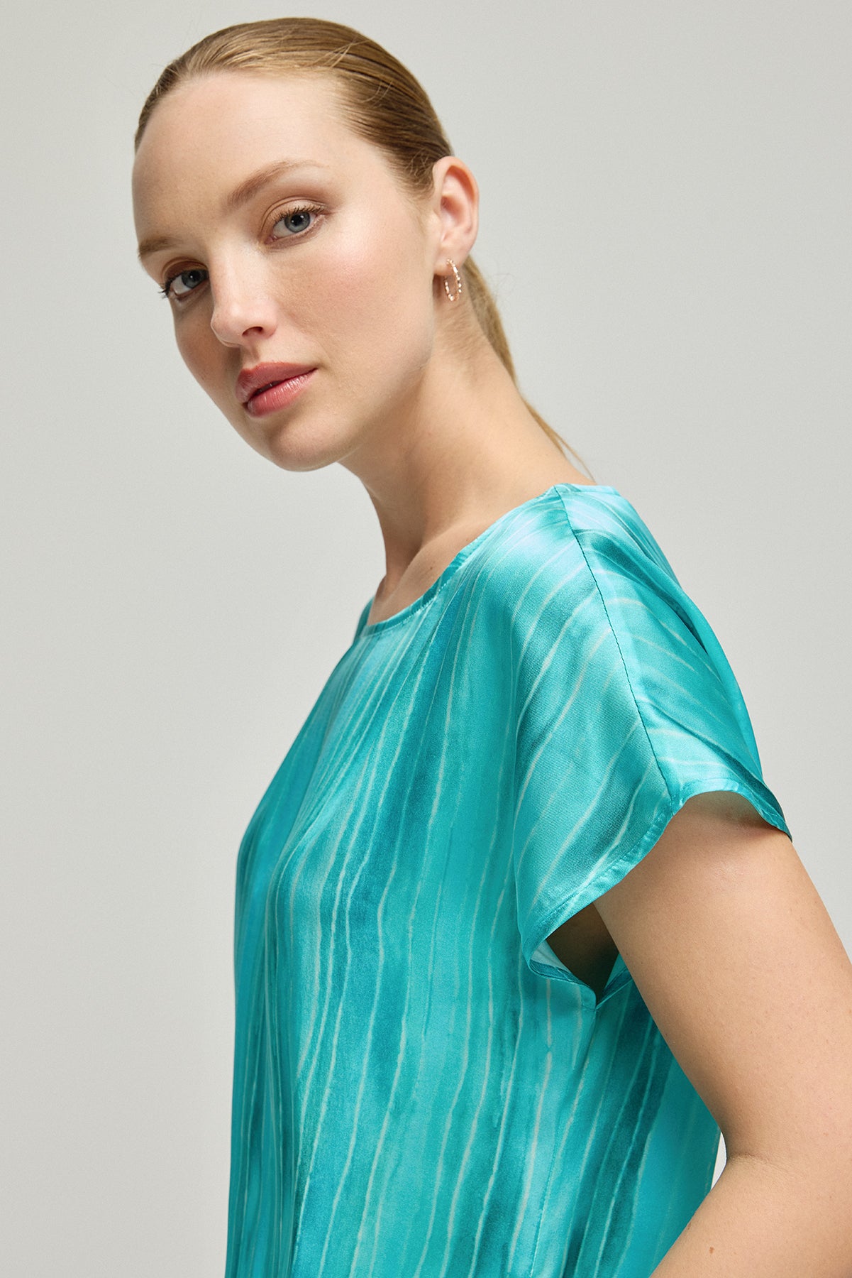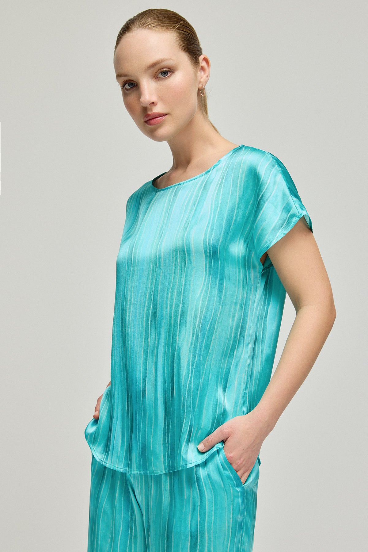 Aqua Nature İpek Desenli Yuvarlak Yaka Kısa Kollu Bluz